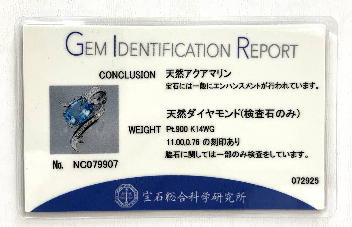 | Pt900 ダイヤ0.76ct アクアマリン11.00ct | ||||||
