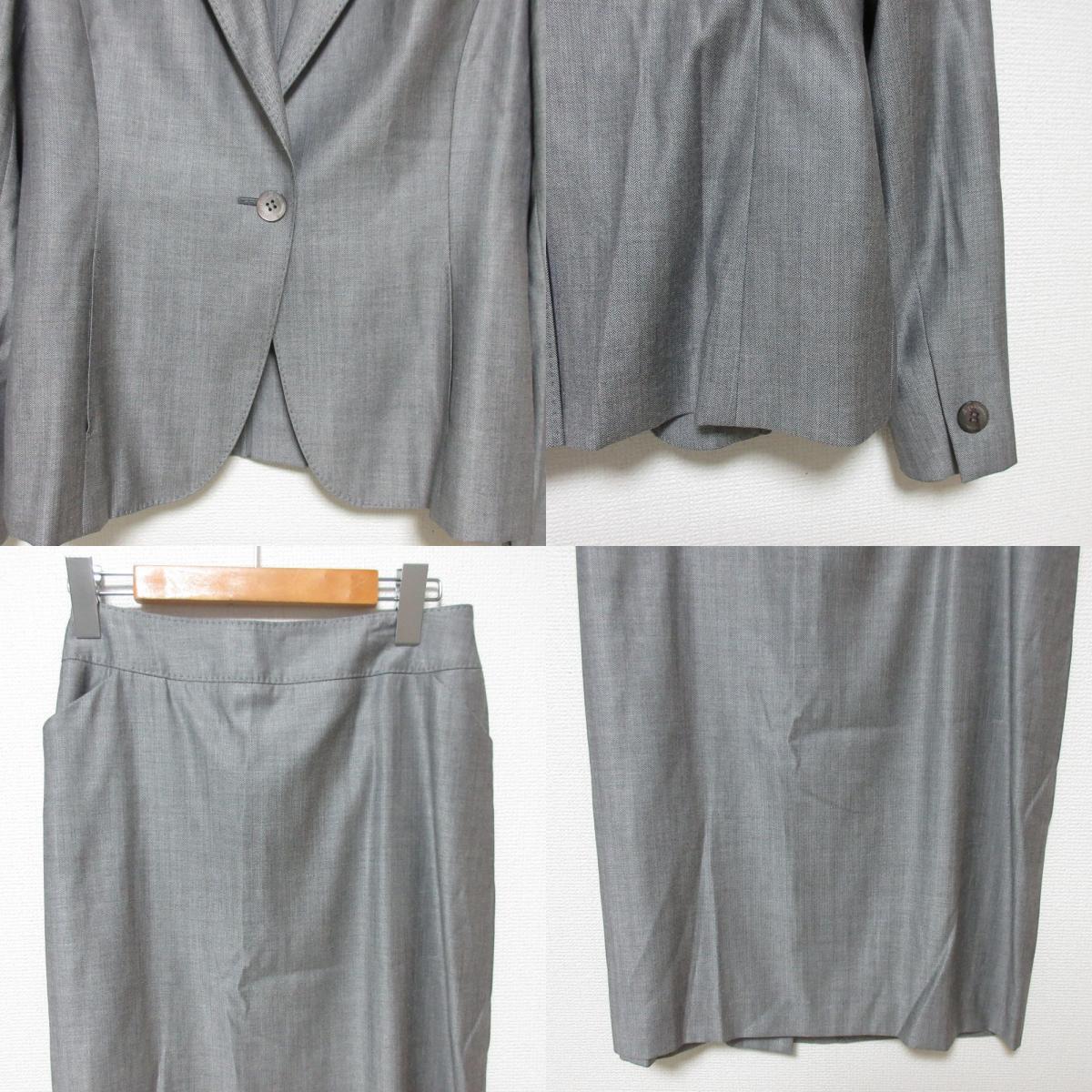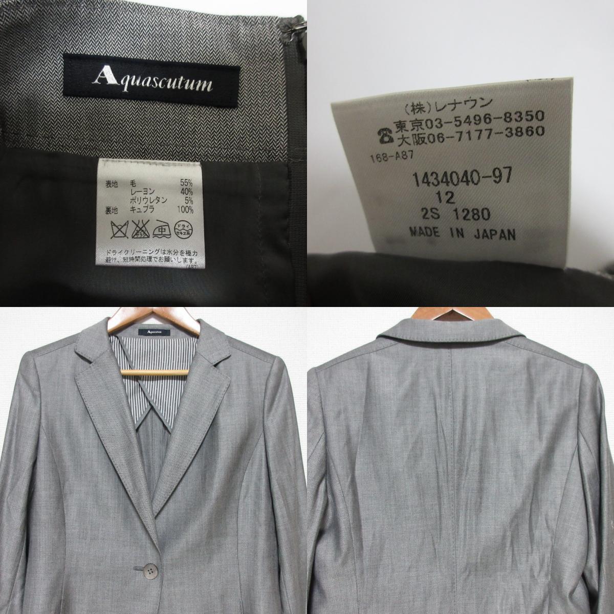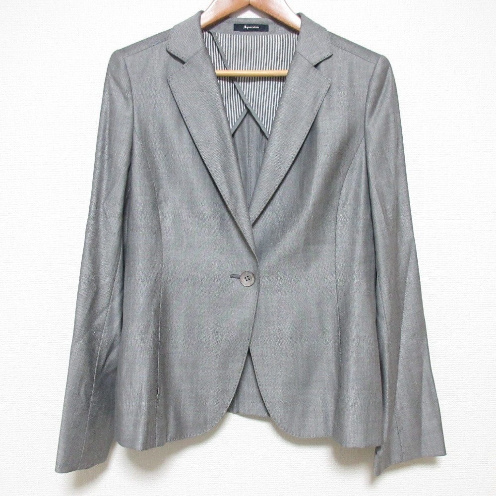 良品 Aquascutum アクアスキュータム シングルジャケット スカート スーツ セットアップ サイズ10 12 グレー