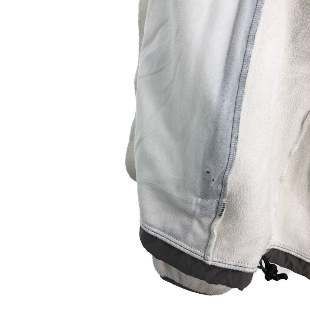 | [商品管理番号] R0845 [ブランド] THE NORTH FACE/ノースフェイス [サイズ] L [実寸サイズ] 肩幅:約44cm 着丈:約66cm 身幅:約57cm 袖丈:約63cm [主な素材] 表地 : ポリエステル [色] ホワイト [仕様] POLARTEC、裾ドローコード アウトドア Denali デナリ [状態] 汚れ:腹部 破れ:腹部裏地 特記事項:使用感あり | |||