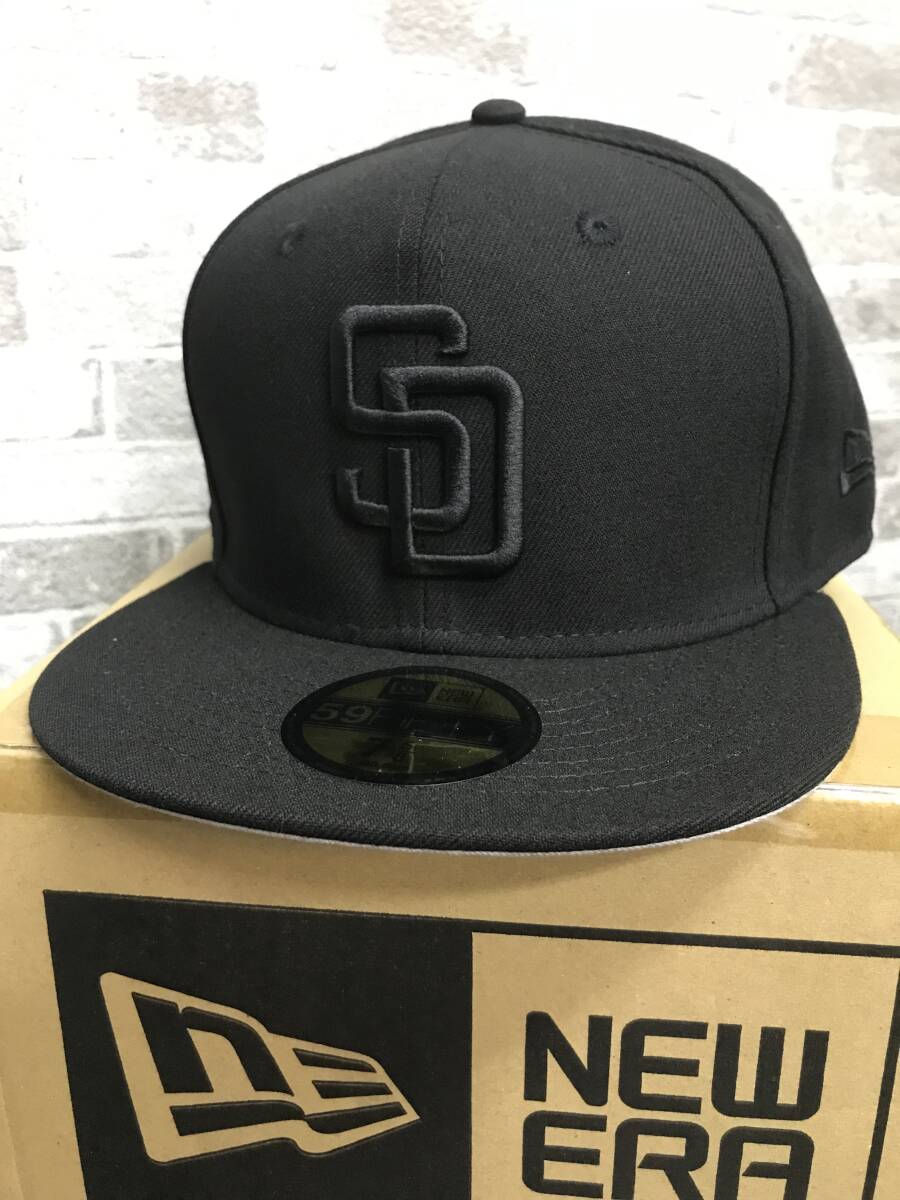 San Diego PadresのNew Era 59FIFTYキャップです。総ブラックカラーがシンプルでスタイルを選ばない超人気モデルです