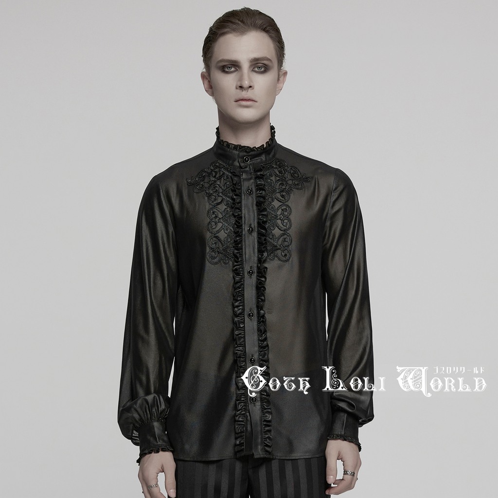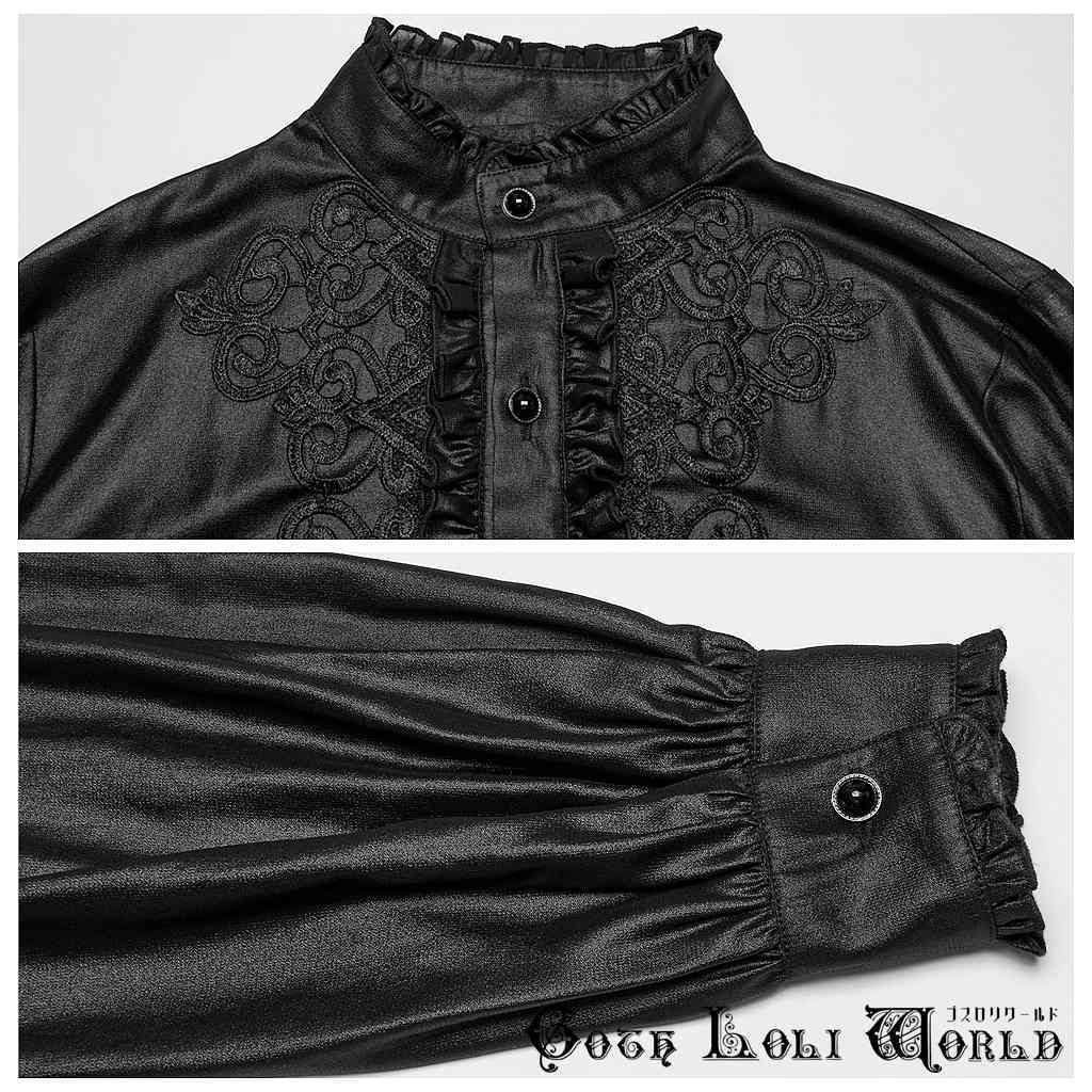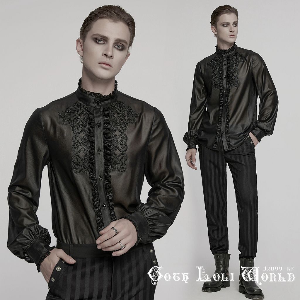即納 WY-1786CCM-BK-L ゴシック ファション スタンドカラー 刺 ブラウス シャツ ブラック 黒色 紳士 ジェントルマン 貴族 男爵