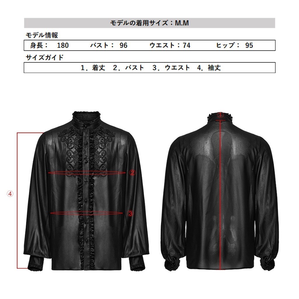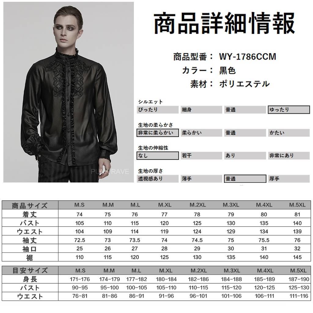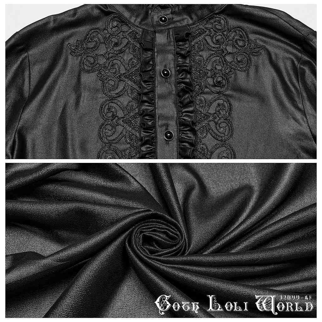 即納 WY-1786CCM-BK-L ゴシック ファション スタンドカラー 刺 ブラウス シャツ ブラック 黒色 紳士 ジェントルマン 貴族 男爵