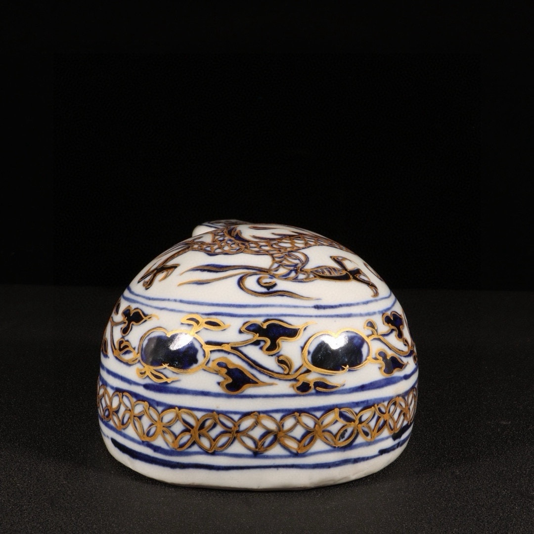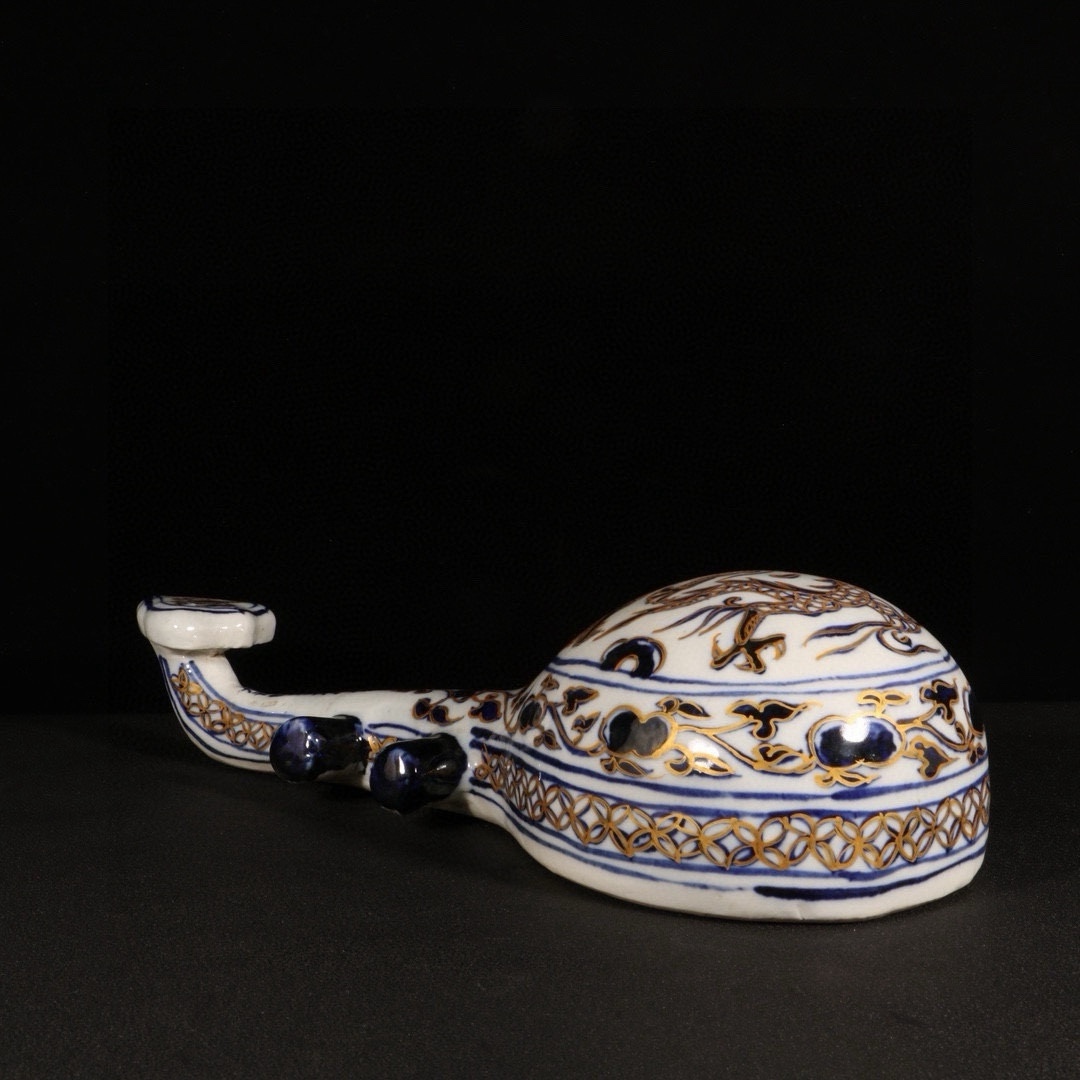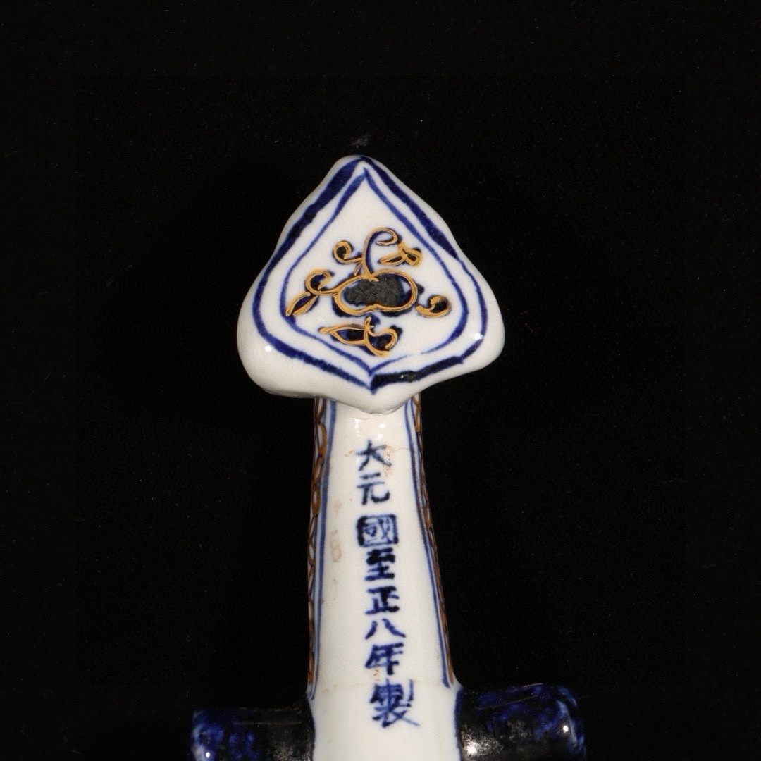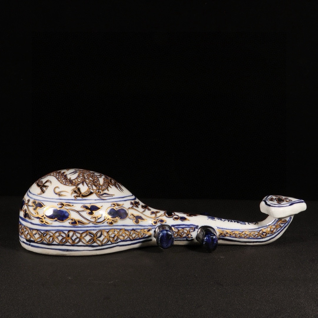 中国元代 青と白に 金竜紋 を描いた琵琶 時代物 陶磁器 中国美術 高さ32 cm 直径12 cm 骨董品 唐物 819
