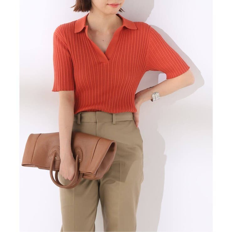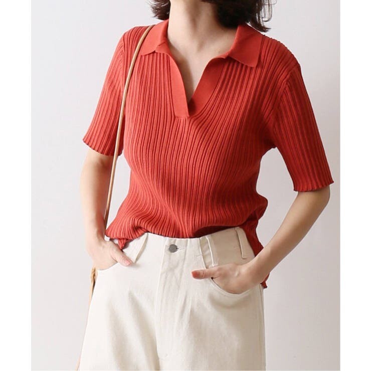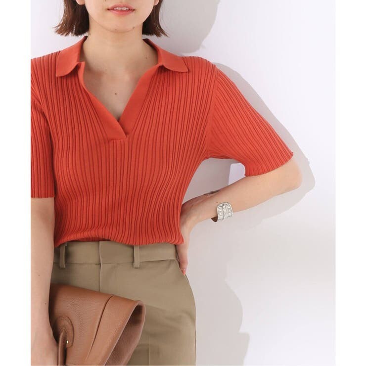 リブ幅を深めにすることで、身体のラインを拾いすぎず女性らしい着こなしに持ち上げてくれます。