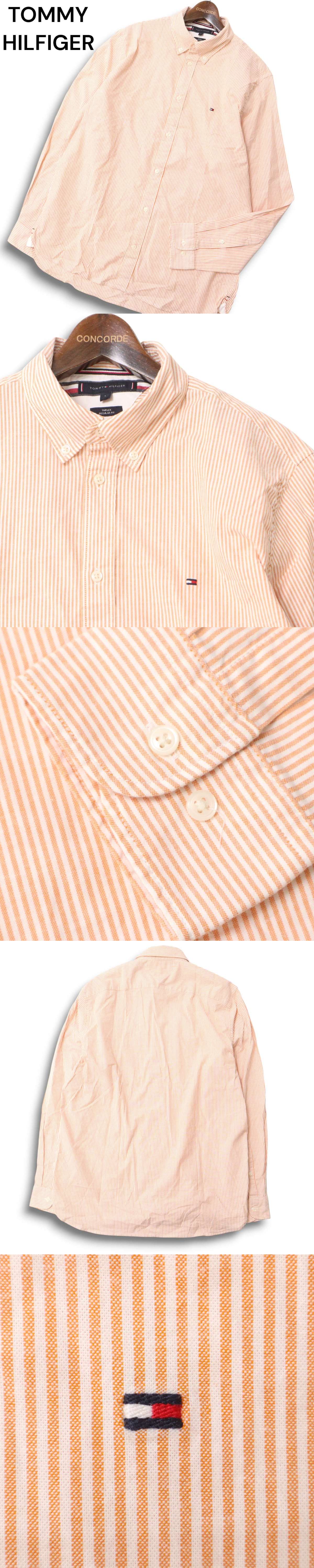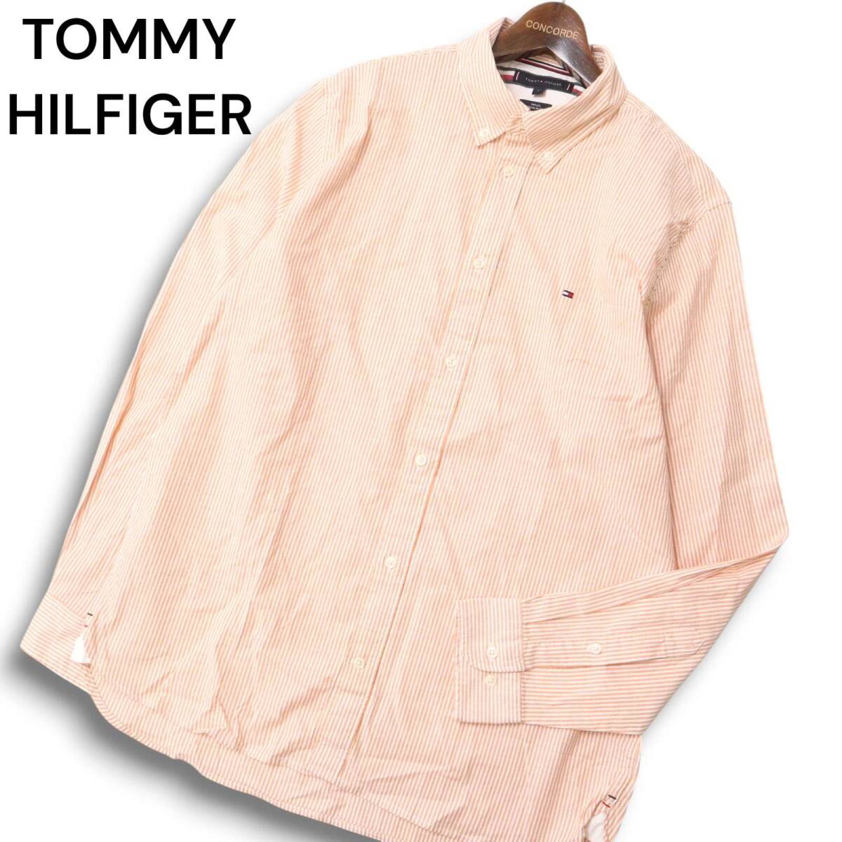 23AW★ TOMMY HILFIGER トミーヒルフィガー 通年 ロゴ刺繍★ 長袖 ボタンダウン ストライプ シャツ Sz.L メンズ