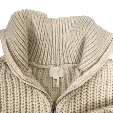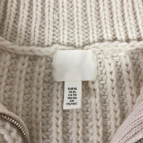 エイチ&エム H&M ニット プルオーバー ハーフジップ ハイネック ローゲージ 長袖 XL 白 ホワイト レディース