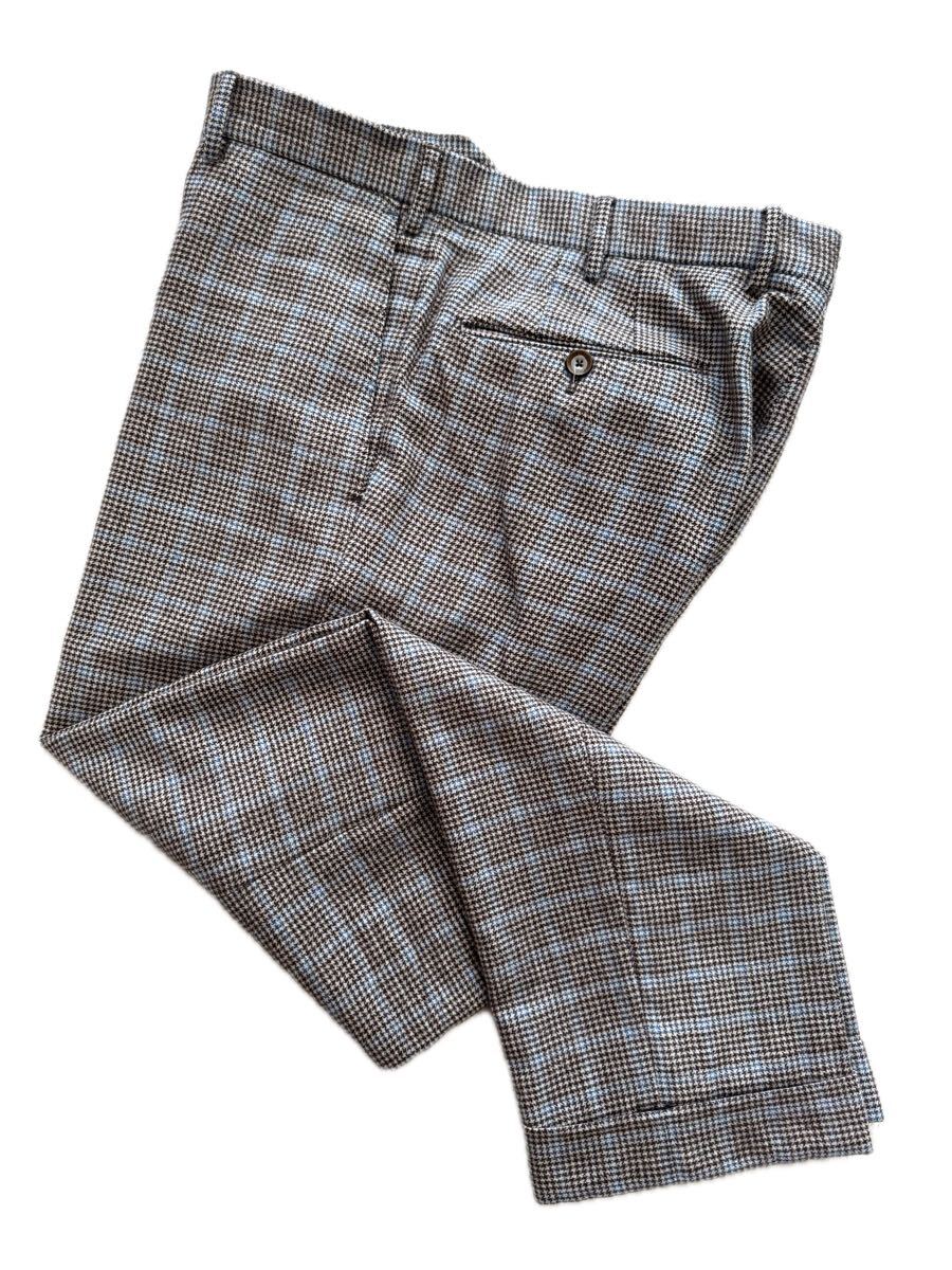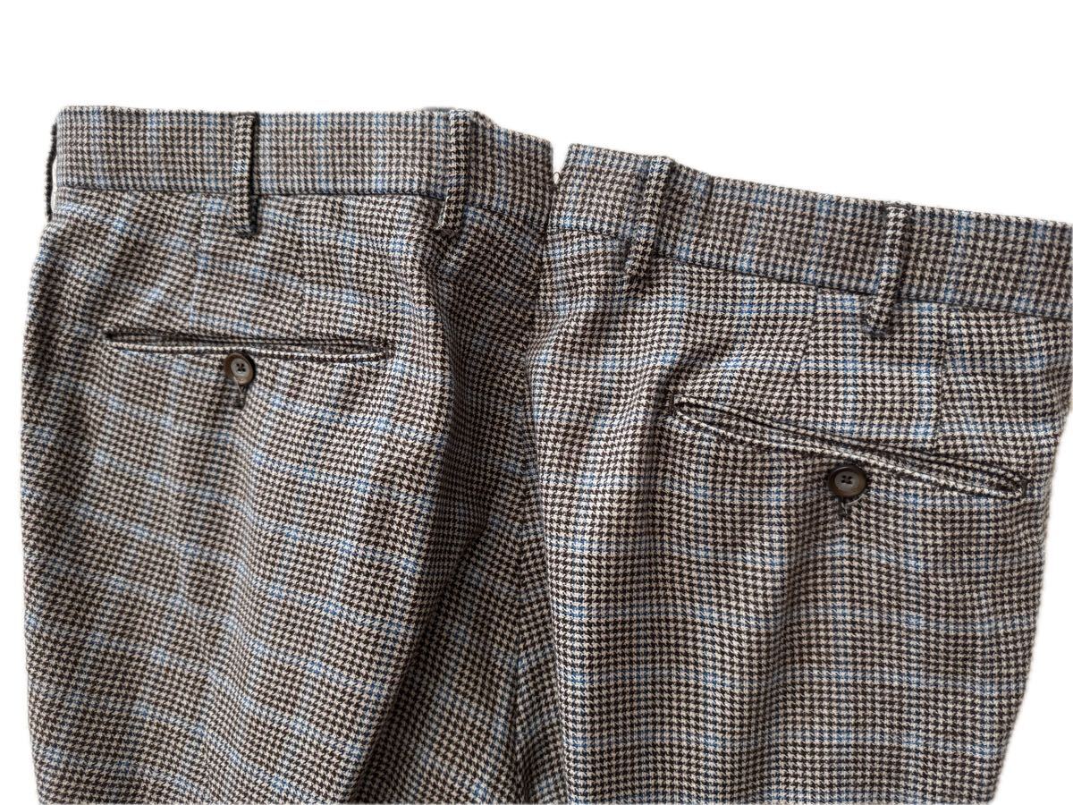 ・クラシカルなグレンチェック?千鳥格子??柄にカシミヤを混紡した風合いの良い上質な生地を使用し立体的で計算されたモダンで綺麗なシルエットがとてもお洒落なスラックスになります。