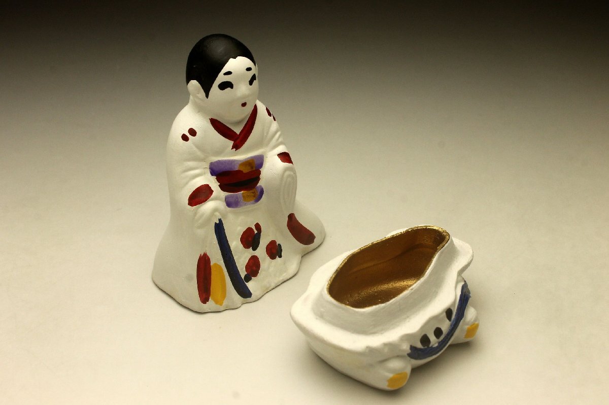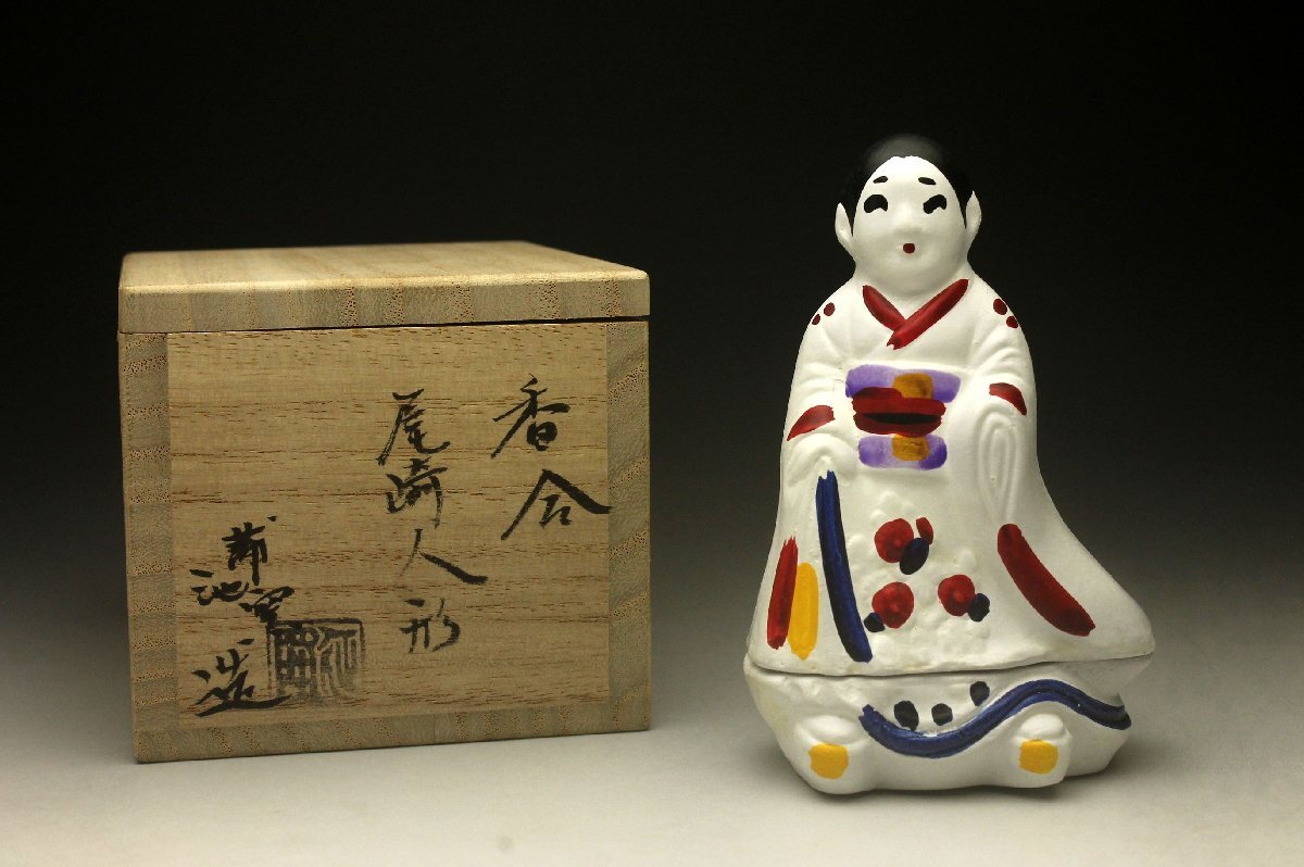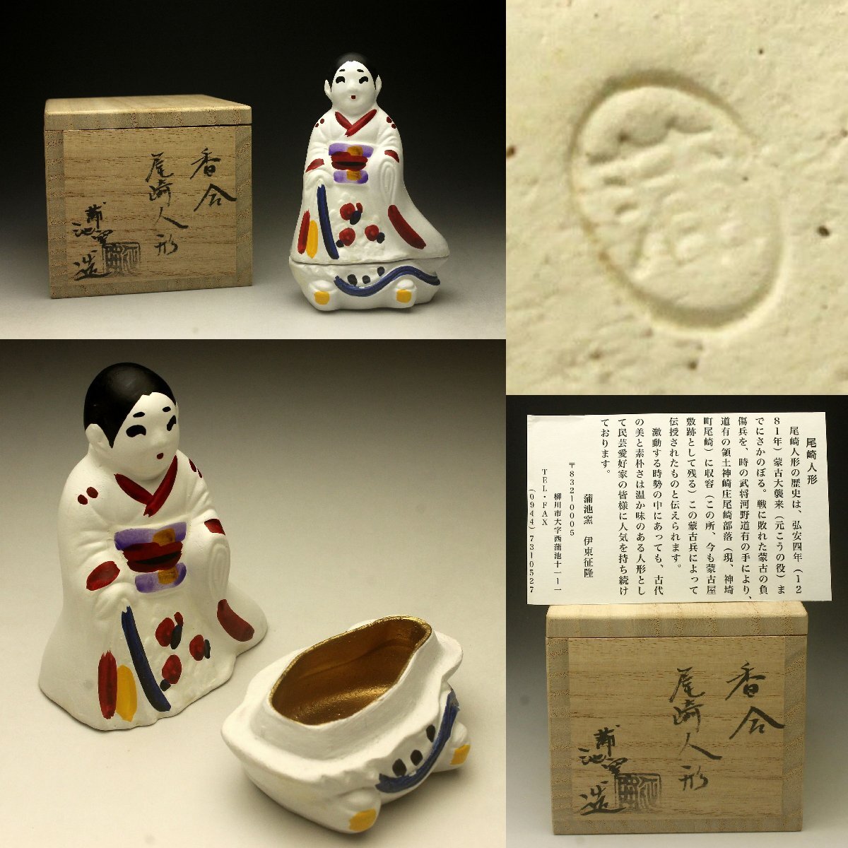 【余韻】 蒲池窯 伊東征隆作 尾崎人形 香合★共箱 茶道具<同梱可>
