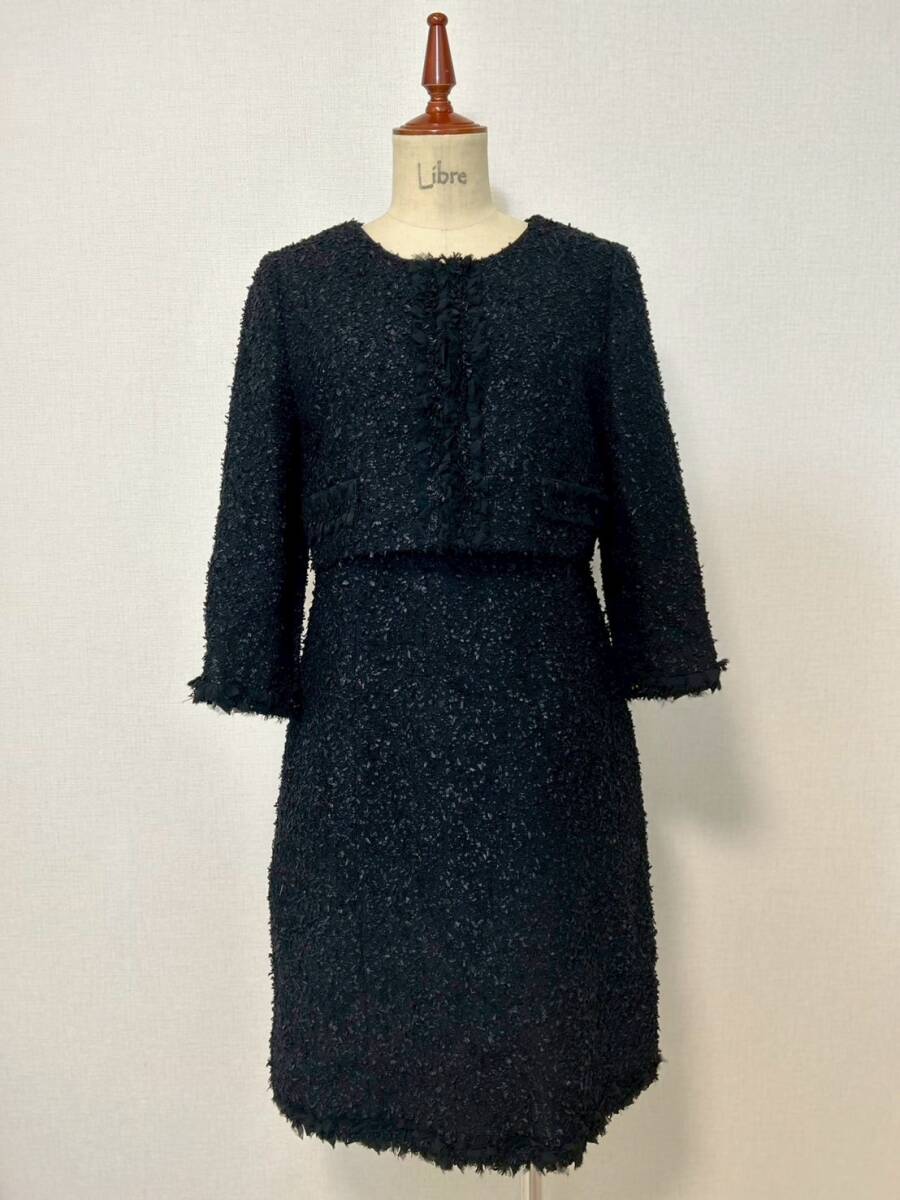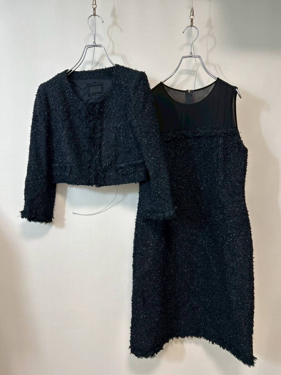 R0127★8 高級 FOXEY フォクシー ツィード アンサンブル セットアップ ノーカラージャケット ワンピース フォーマル ブラック JPタグ