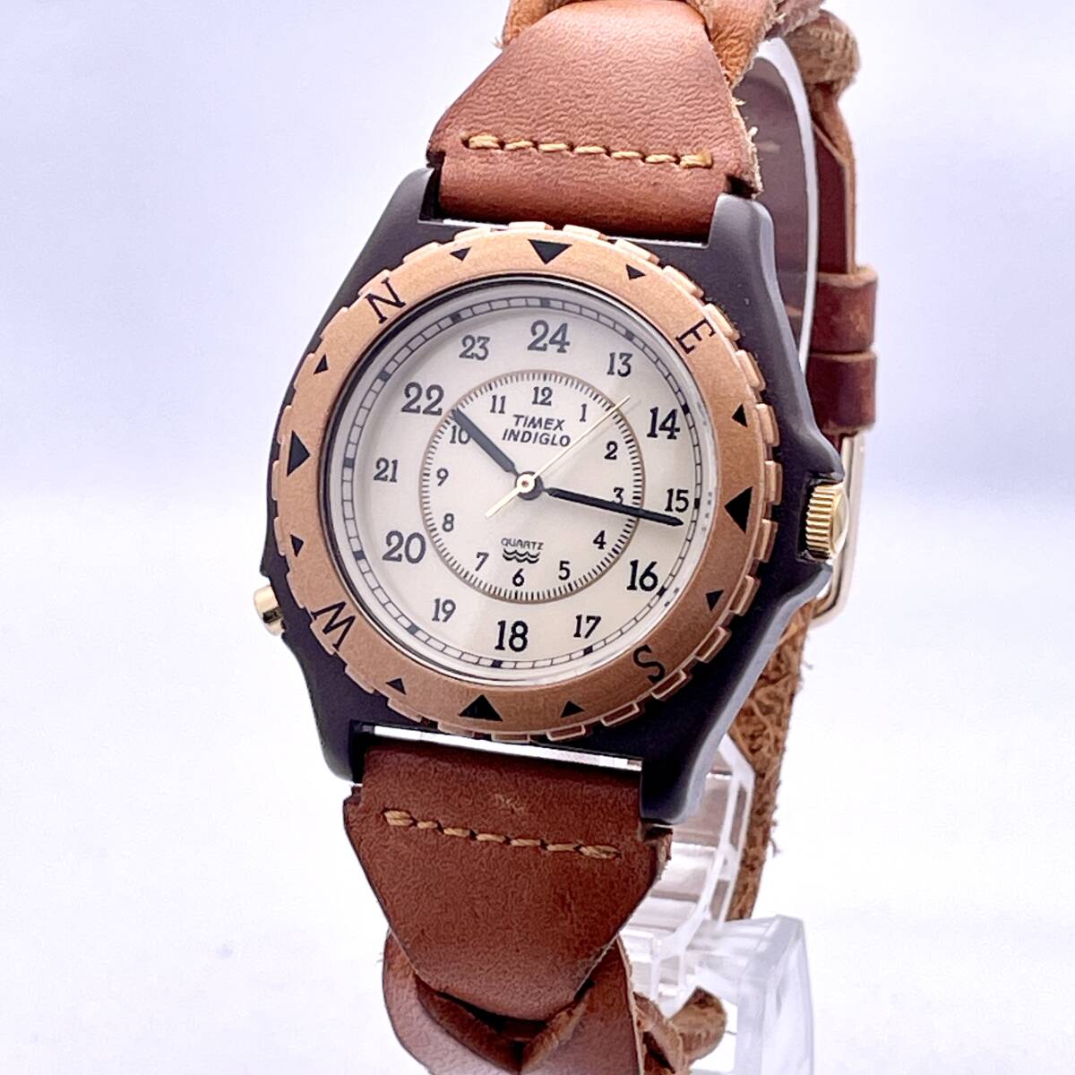 TIMEX タイメックス INDIGLO CR 1025 CELL 腕時計 メンズ ウォッチ クォーツ quartz 回転ベゼル 茶 ブラウン P4168