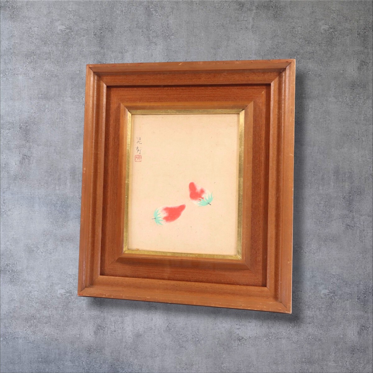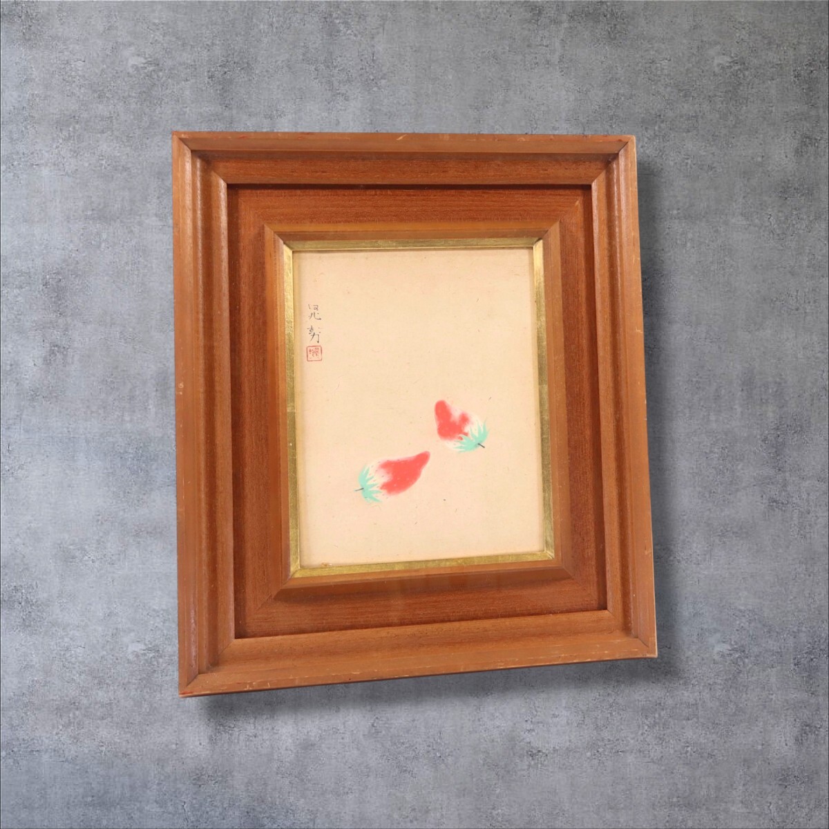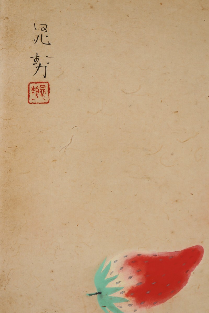 真作 三輪晁勢 日本画「苺ノ図」画寸 3号 新潟県出身 日本芸術院会員 堂本印象に師事 鋭い観察力と独自の色彩感覚 瑞々しいイチゴ 11296