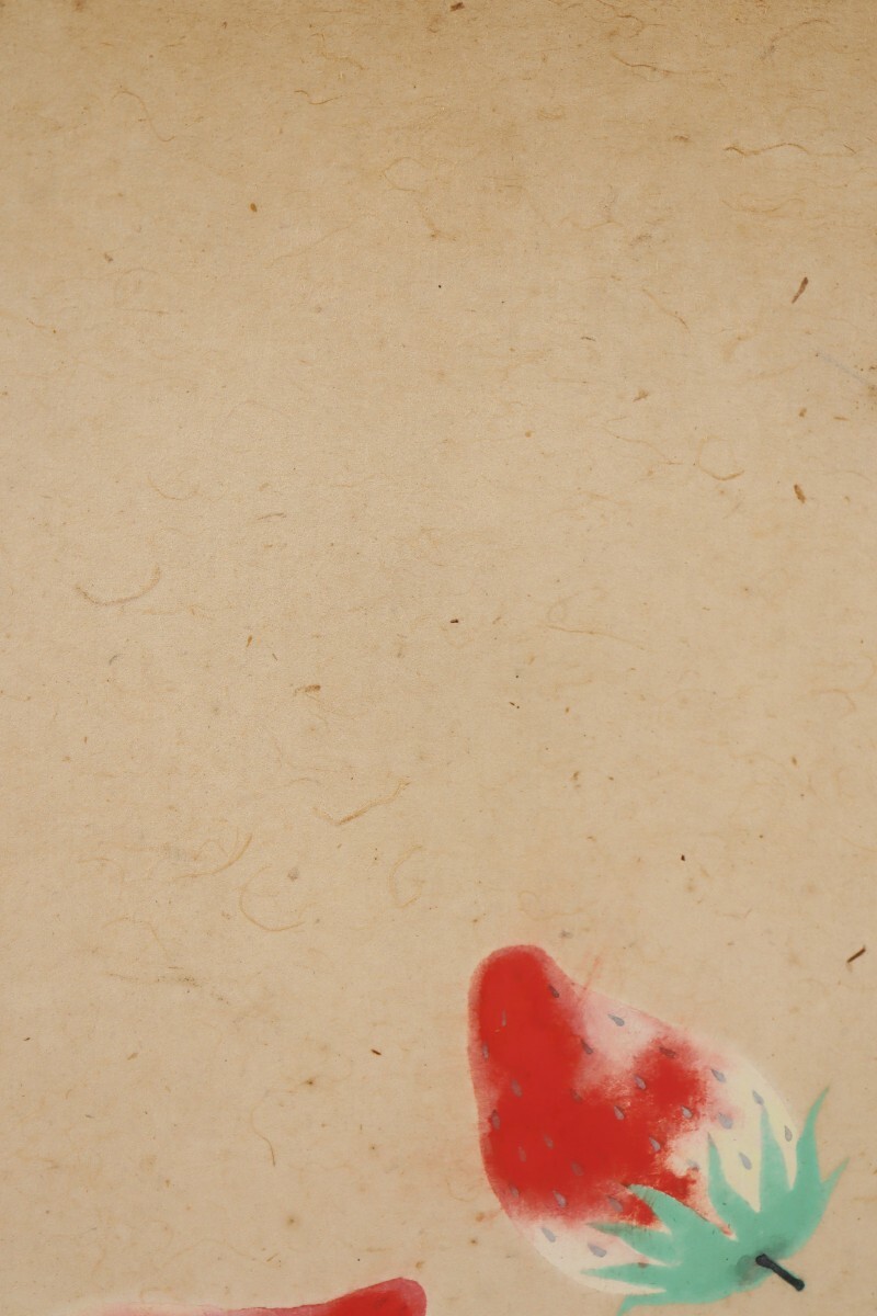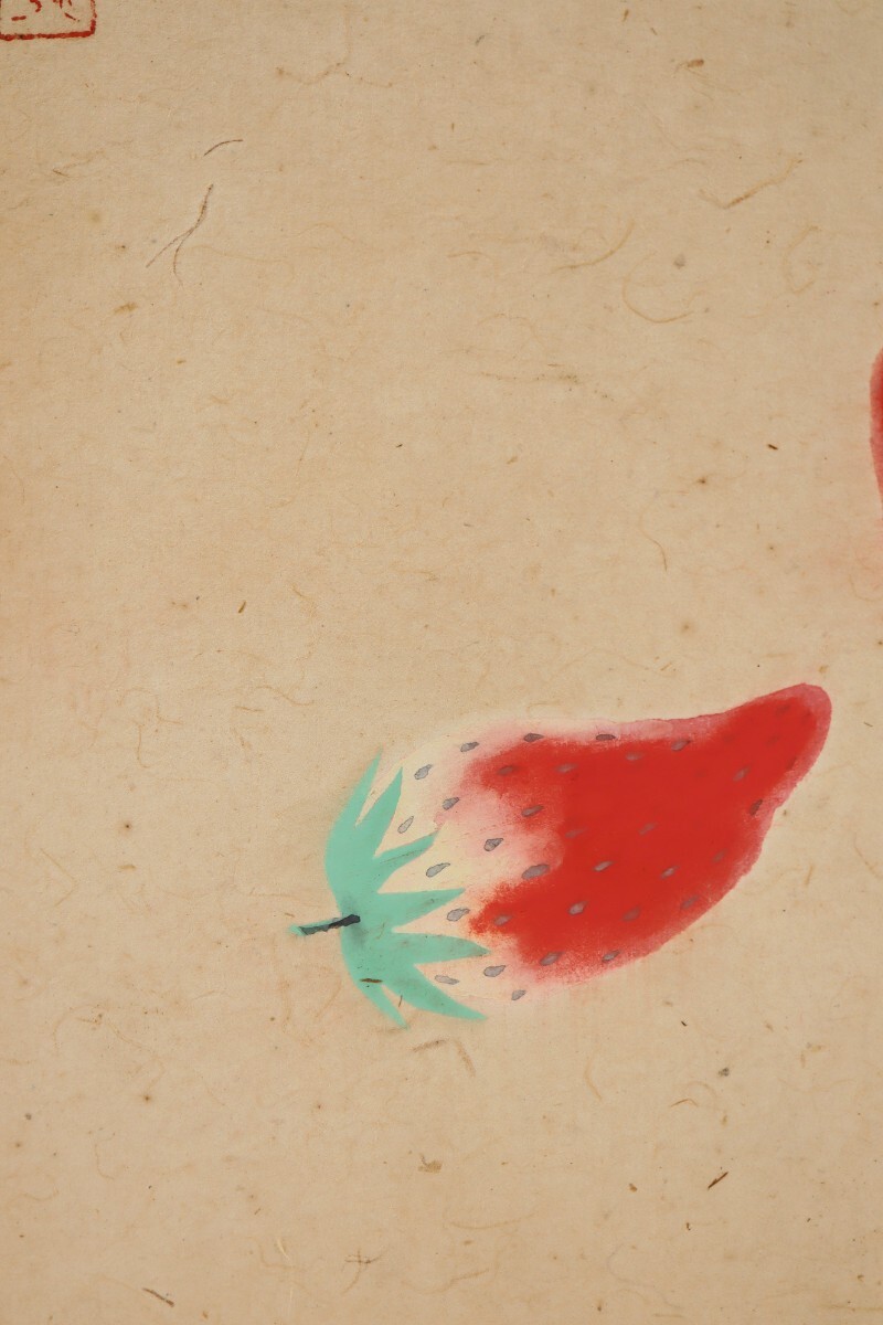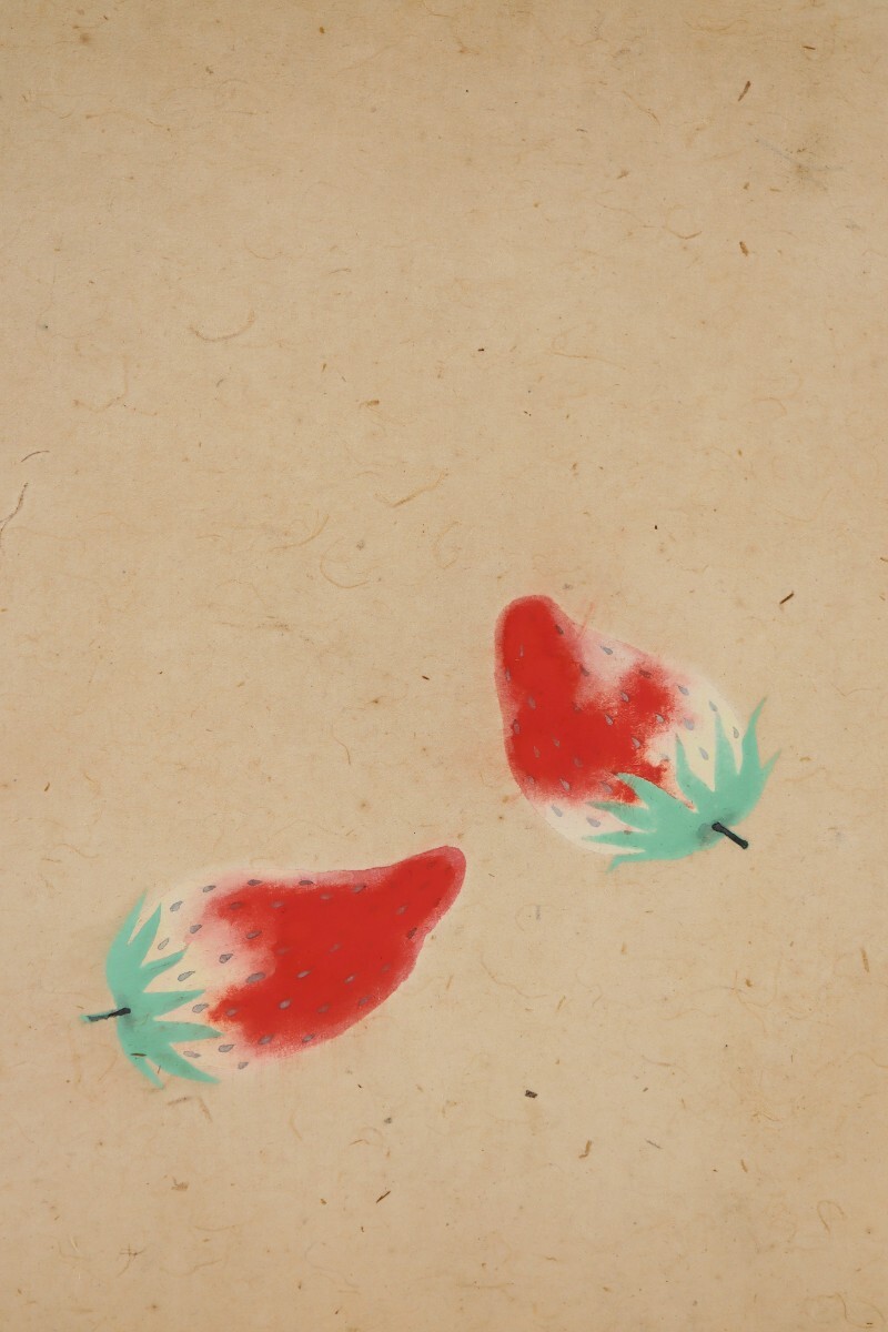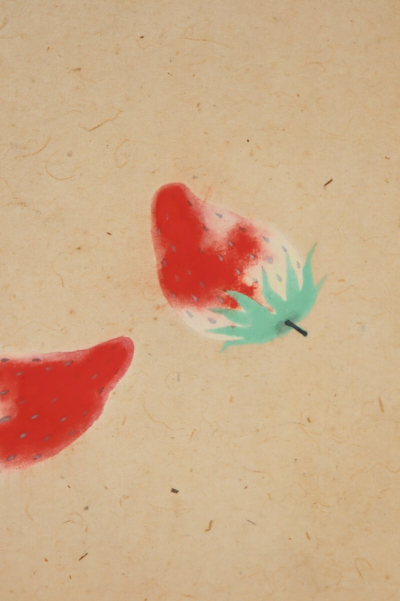 日本画ならではの柔らかな色彩と質感が、苺の瑞々しさや