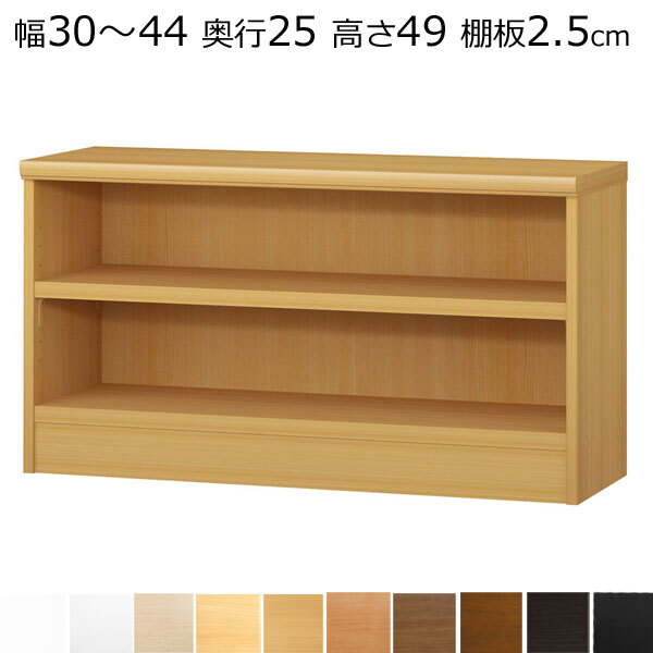 【特徴】幅15~70cm(棚板厚み1.7cm)(棚板厚み2.5cmは~幅90cm)まで1cm単位でオーダーメイド、本棚です。高さ49・60・70・80・88・117・135・150・178・211cmの10サイズ、奥行きは19・25・31・40・46cmの5サイズ、カラーは12色。【本体外寸】幅30~44×奥行き25×高さ49cm(約)【棚板枚数】1枚【幅の内寸】全体の幅サイズから3.6cmを引いた寸法となります。※側板(縦の両脇の板)の厚みは2.5cm 棚は移動可能で穴から穴までの高さ(ピッチ)は3cm【色・主材】木目調ナチュラル・木目調ブラウン・つや消しアイボリーホワイト・つや消しブラック色など12色・プリント紙化粧繊維板【生産国 】JAPAN※お客様組み立て商品です。(組み立て家具です)【お詫び】北海道・沖縄・離島は別途送料がかかります。【井崎店長から一言】特別注文のため、ご注文後のお取り消しがお受けすることが出来ません。サイズの確認を十分にお願いいたします。す。