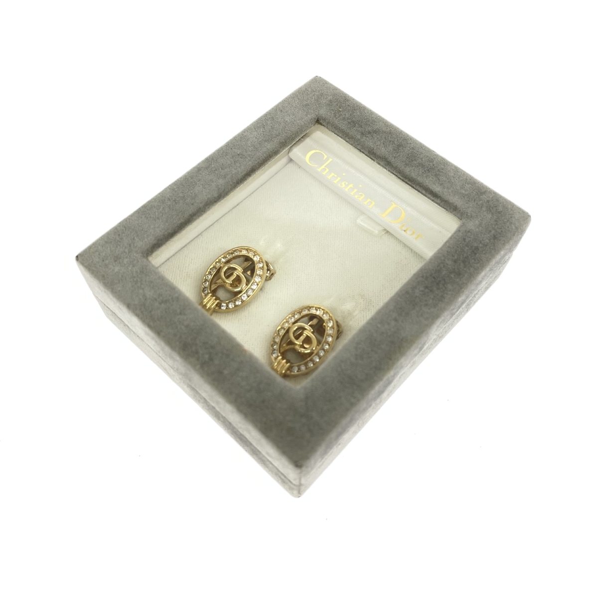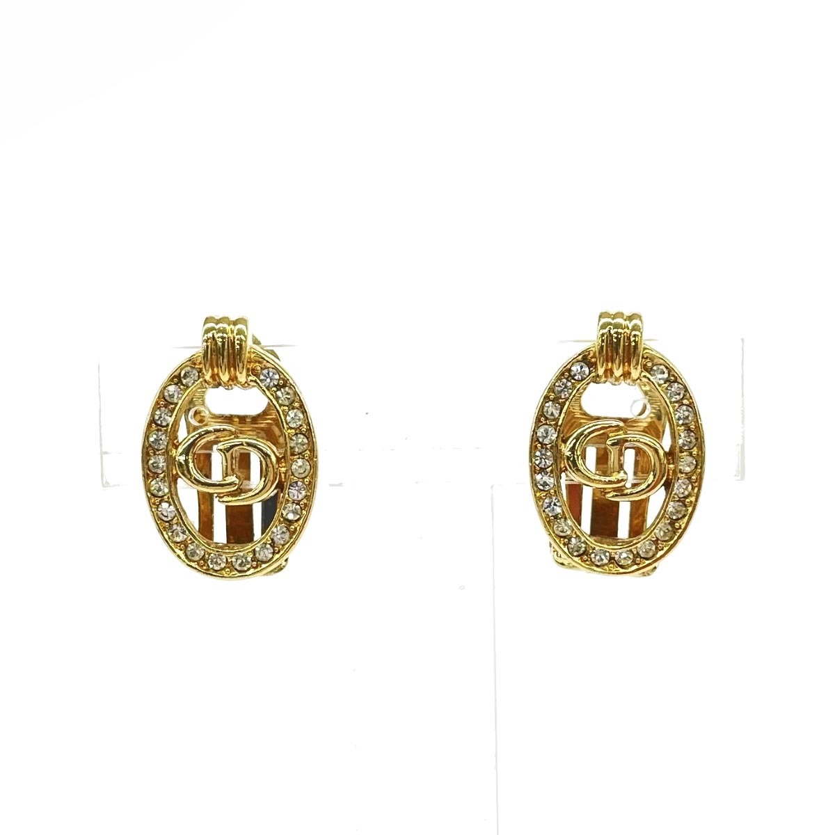 イヤリング CDロゴ/オーバル型/ラインストーン/GP |
