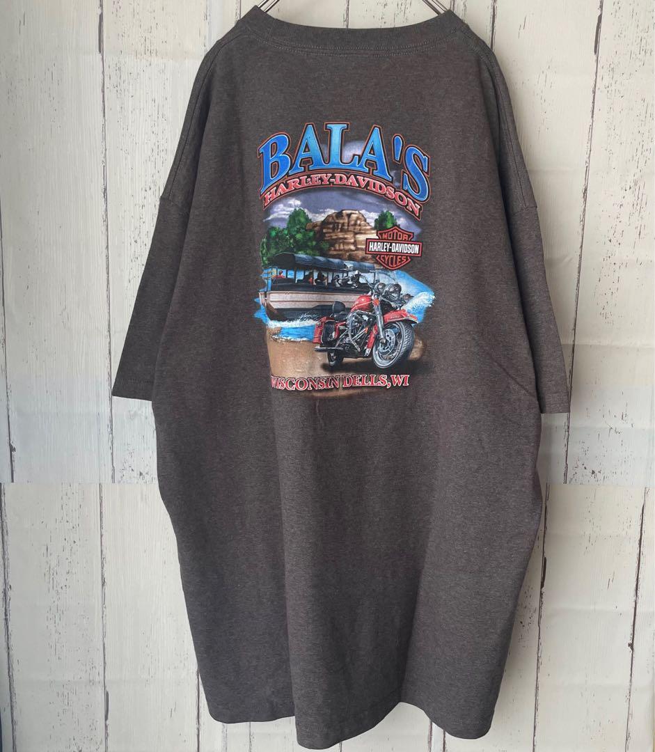 【貴重】ハーレーダビッドソン Harley Davidson Tシャツ 半袖 ブラウン 茶 2XLサイズ メンズ ヴィンテージ 古着 BALA's