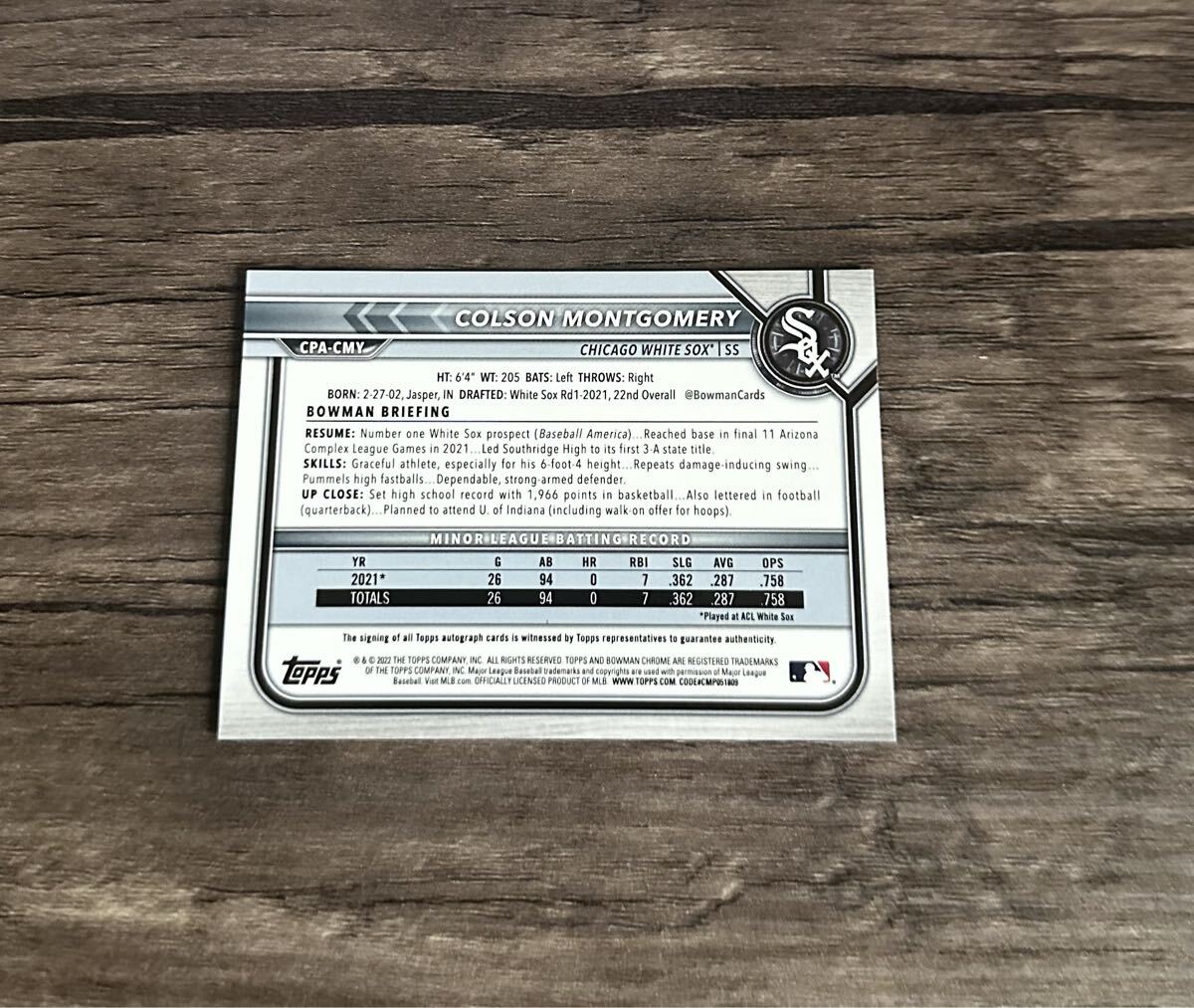 100枚限定 TOPPS BOWMAN Colson Montgomery 直書き 直筆サイン Auto Chicago White Sox MLB