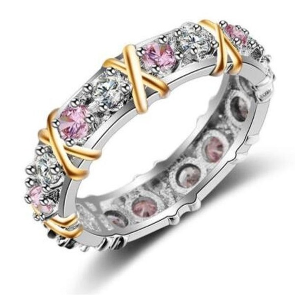 クロス 10 18k ゴールド 4 ミリメートルラボダイヤモンドリング 925 スターリングシルバー婚約結婚指輪リング女性男性