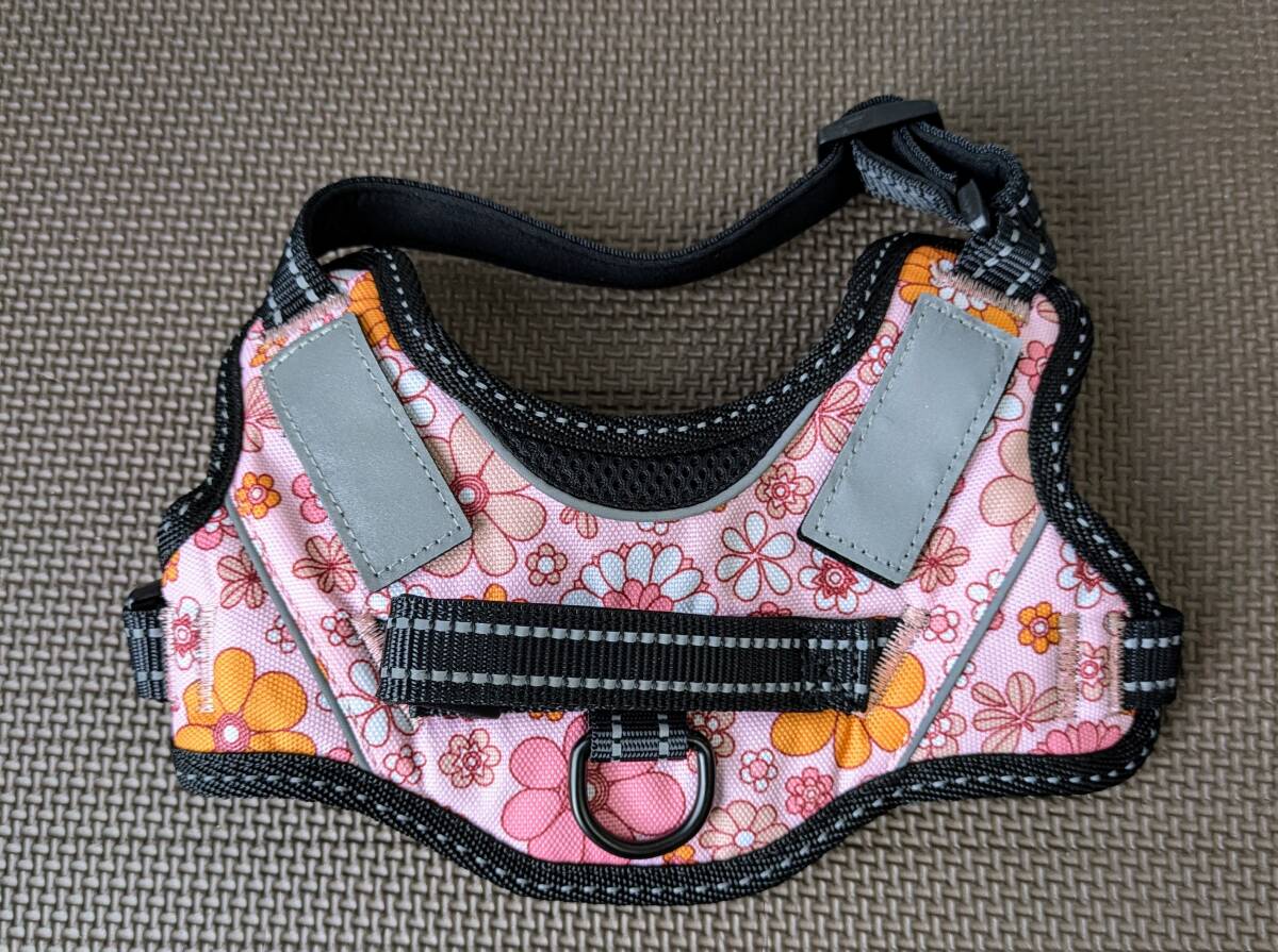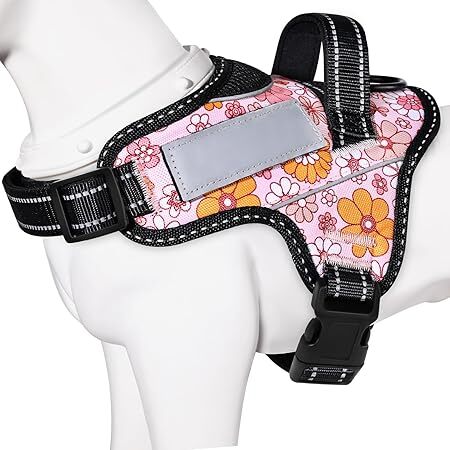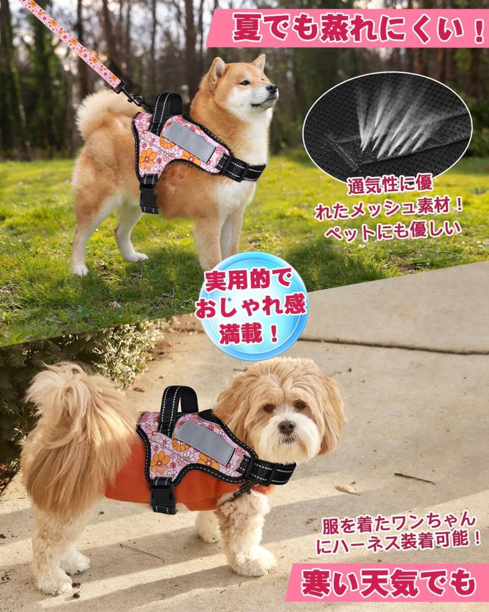 犬用胴輪 小型犬/中型犬/大型犬ハーネス 暑さ対策 喉に優しい おしゃれな色 通気性 負担がない ネームプレート (ピンクフラワー、S)