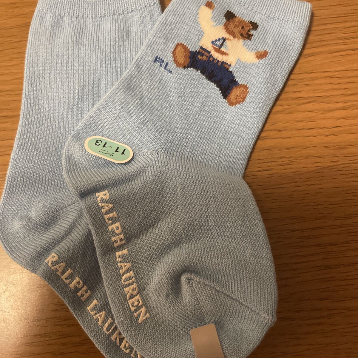 ♪新品!ラルフローレン ブルー テディベア柄 靴下11~13センチ 日本製ナイガイ No.25
