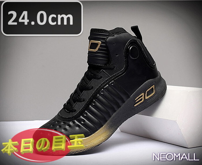 1スタ ☆ メンズ スニーカー 24.0cm ブラック × ゴールド 靴 シューズ 防滑 ランニング ジョギング 通勤 通学 旅行 【811】