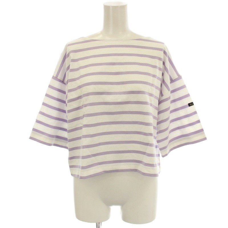 未使用品 ルミノア Leminor ボーダー カットソー 24-070-150-0008 半袖 ボートネック Tシャツ F 紫 パープル