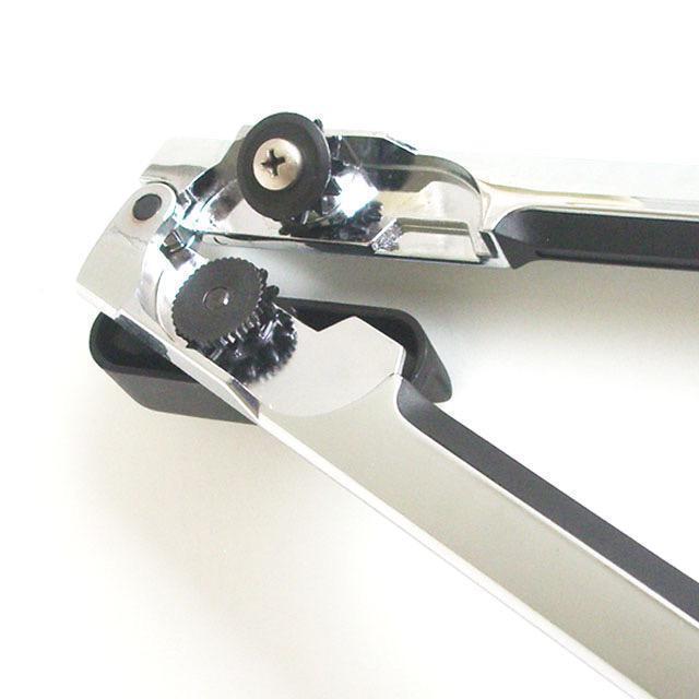 缶のふちに刃をセットして、後はハンドルを回すだけ。 切り口が滑らか綺麗!