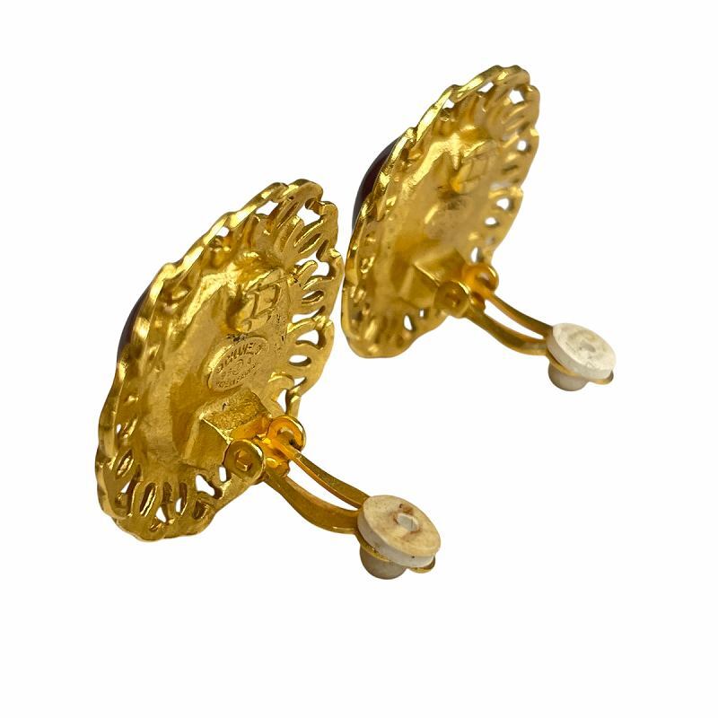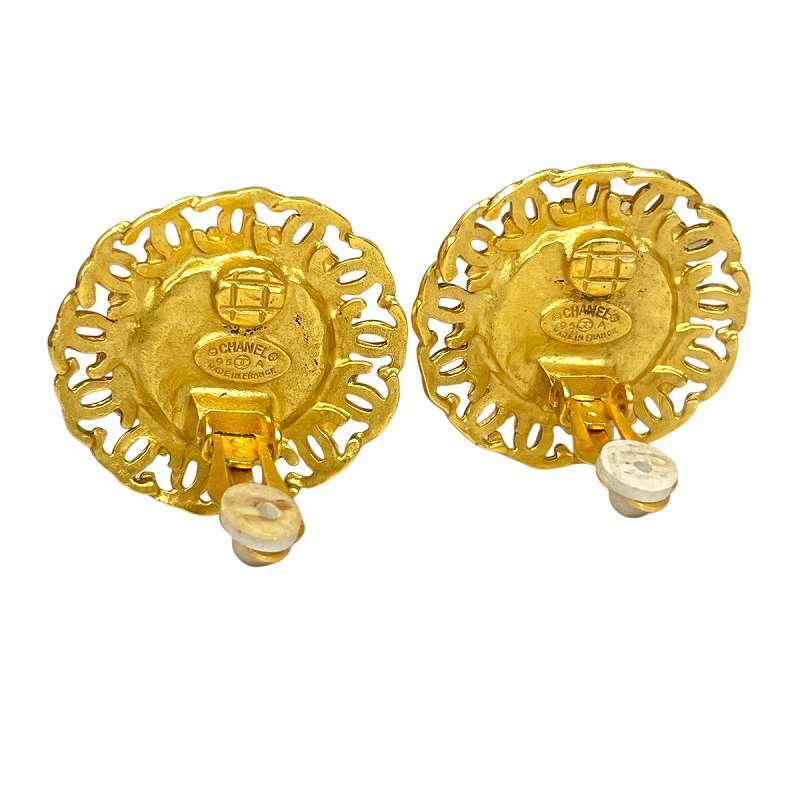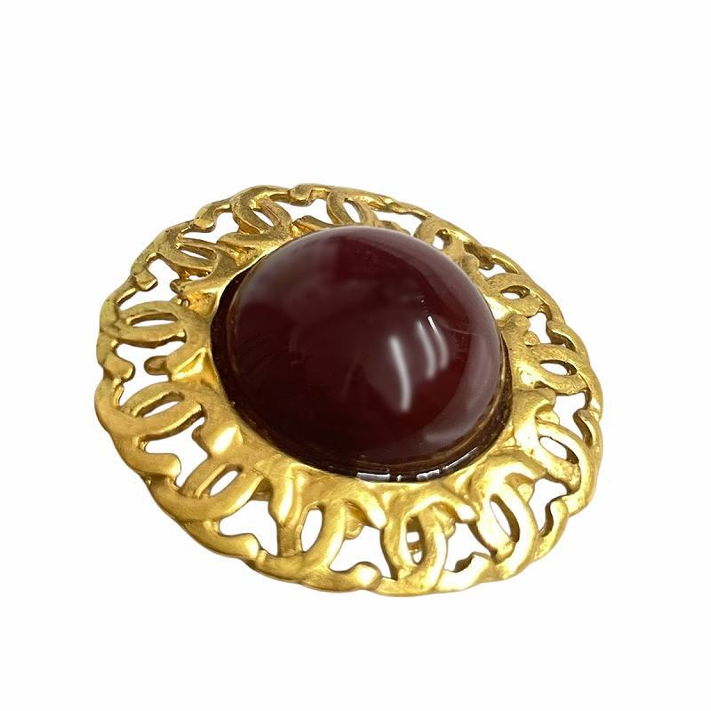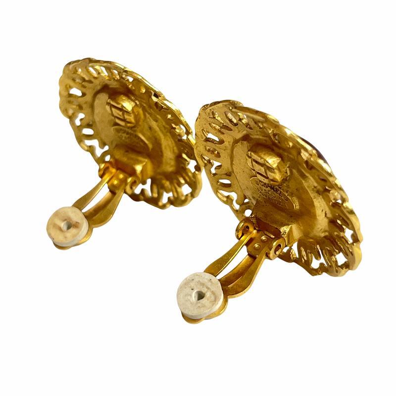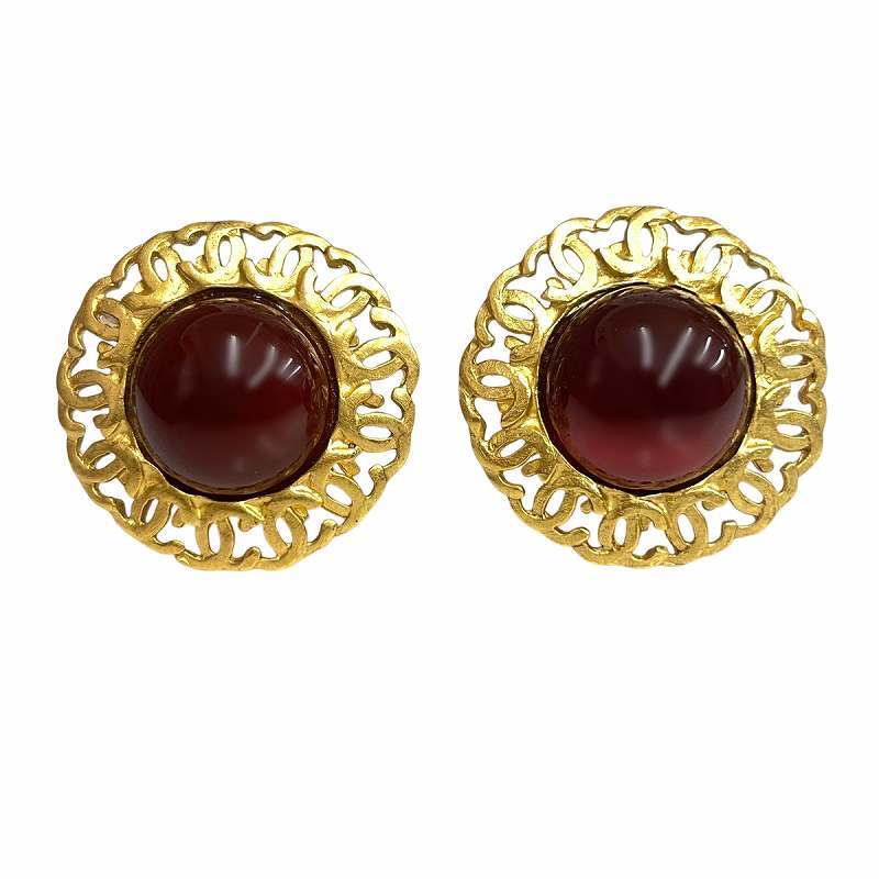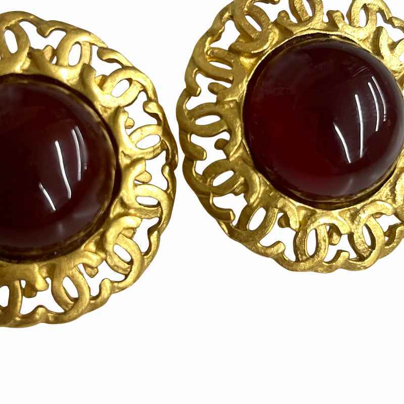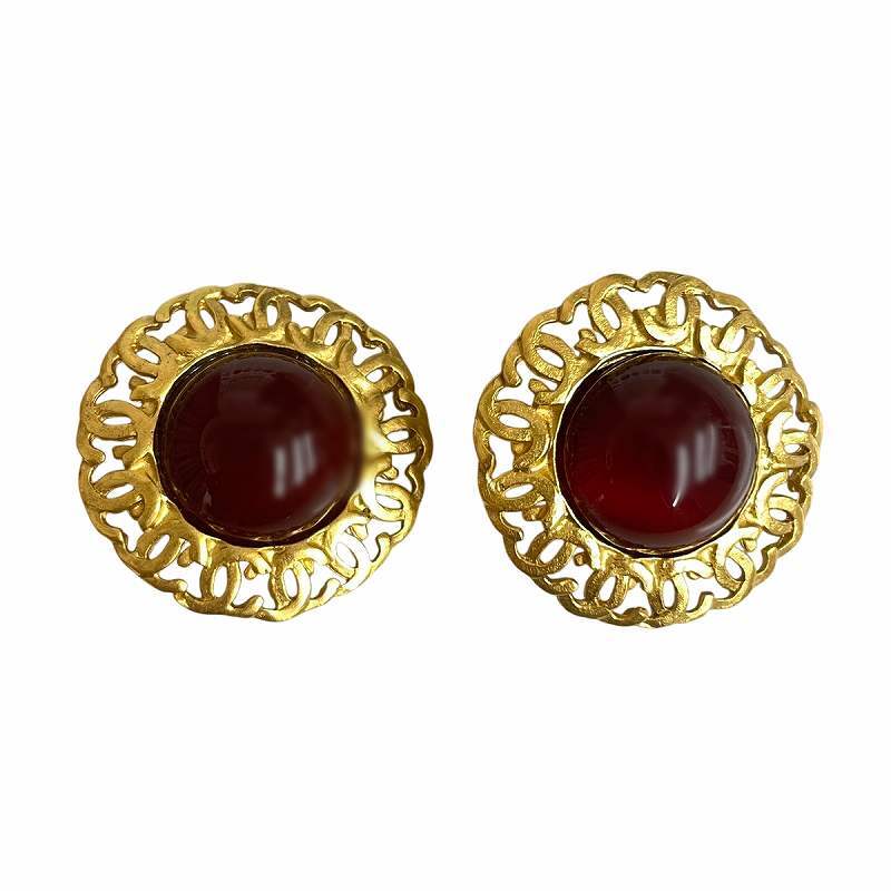 シャネル CHANEL 希少 95A イヤリング ココマーク レッド カラーストーン グリポア GP 赤 ゴールドカラー ☆AA★
