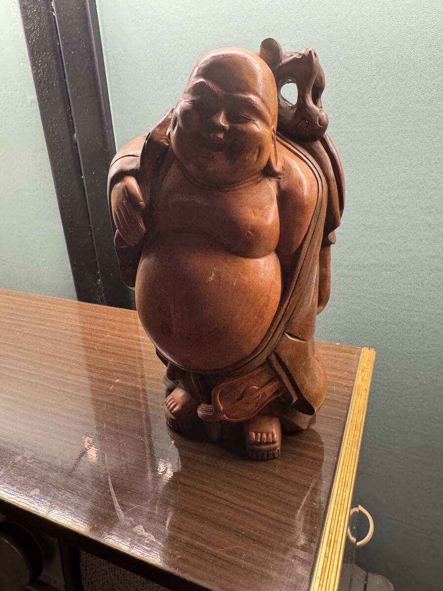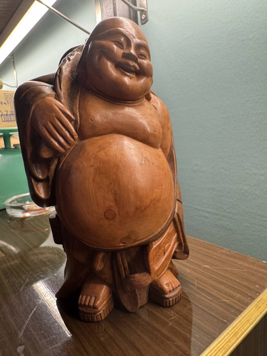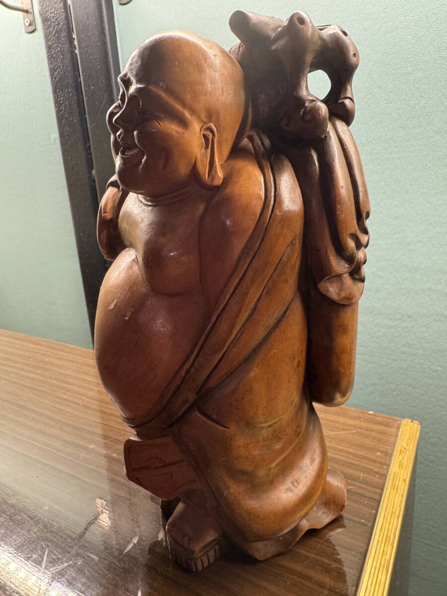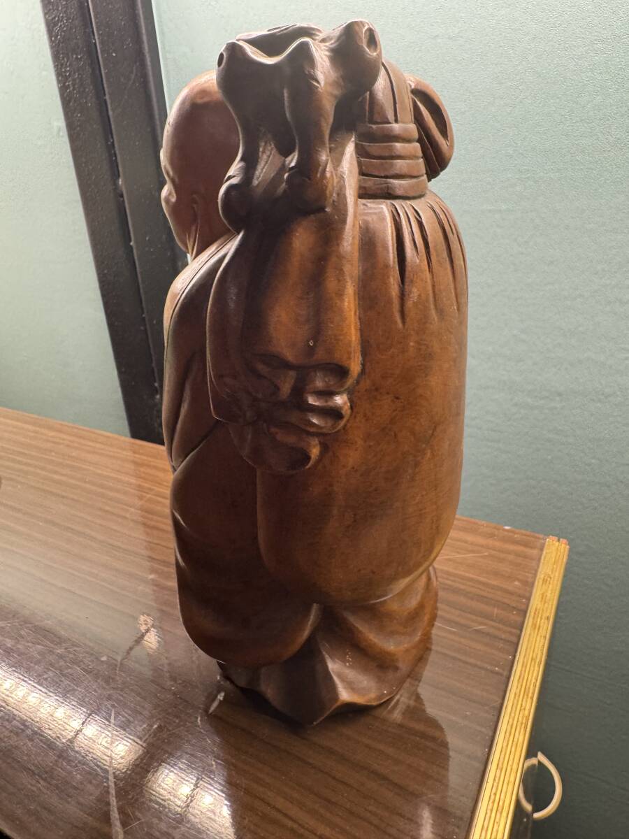 素晴らしい 細工品 布袋木彫りです。一切割れ ビビ割れなとのない どっしりしてます。