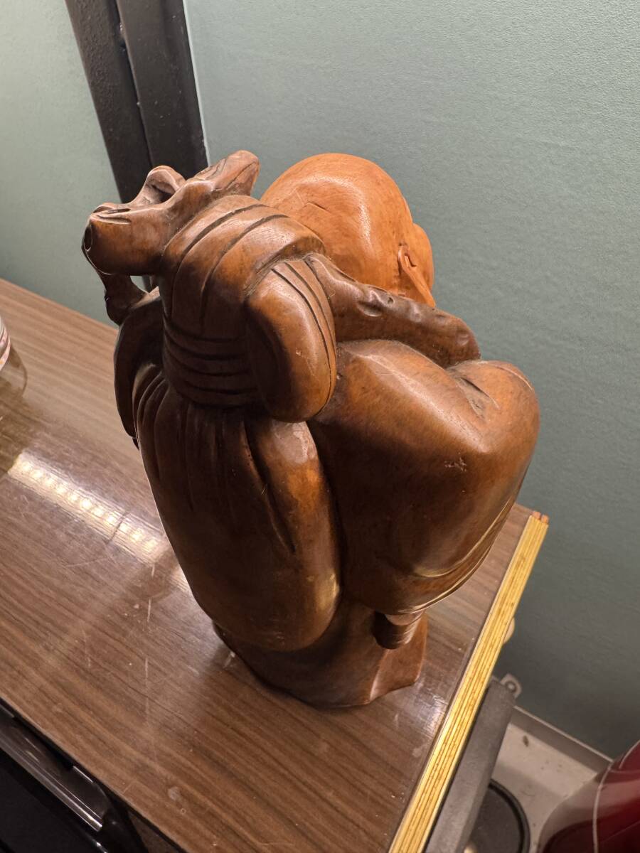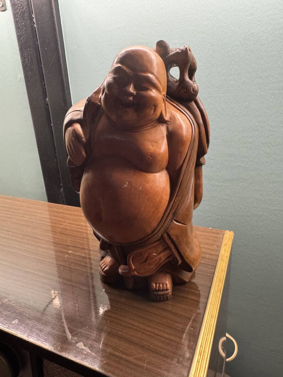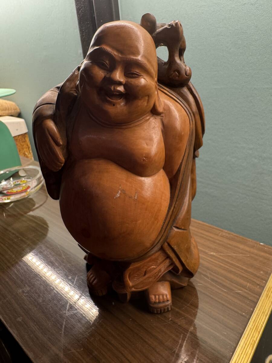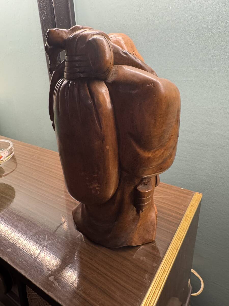 素晴らしい 細工品 布袋木彫りです。一切割れ ビビ割れなとのない どっしりしてます。