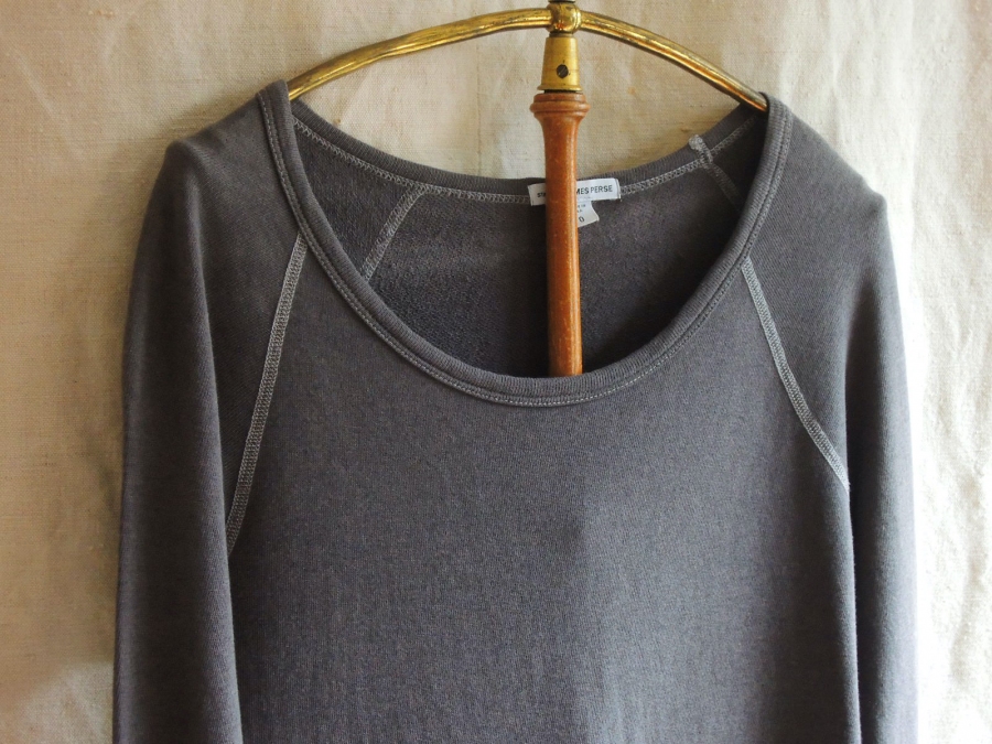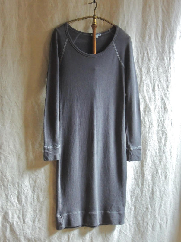 TOMORROWLAND別注 米国製 JAMES PERSE スウェットワンピース USA製 チャコール 裏起毛 ロング丈 灰色 リブ ナイトウエア パジャマ 寝具