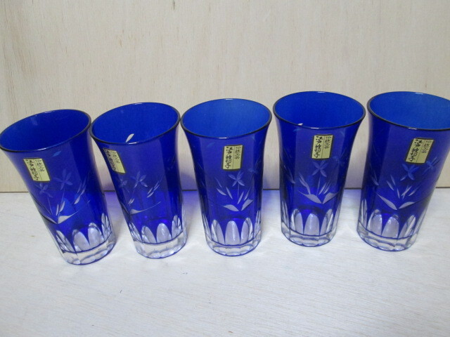 ★江戸被切子グラス 一口ビールセット 5個 未使用★