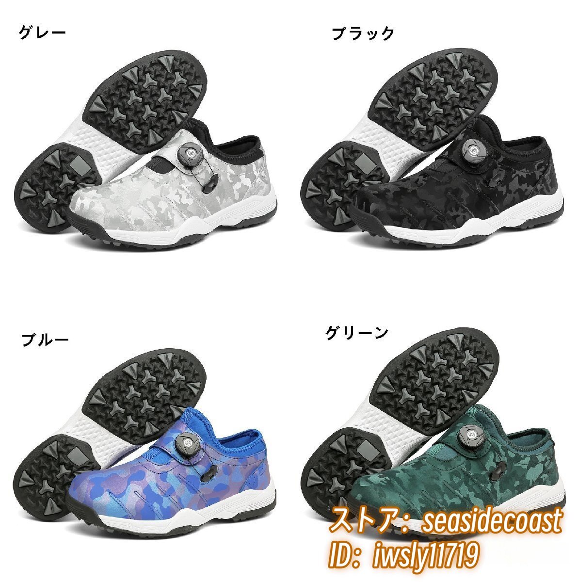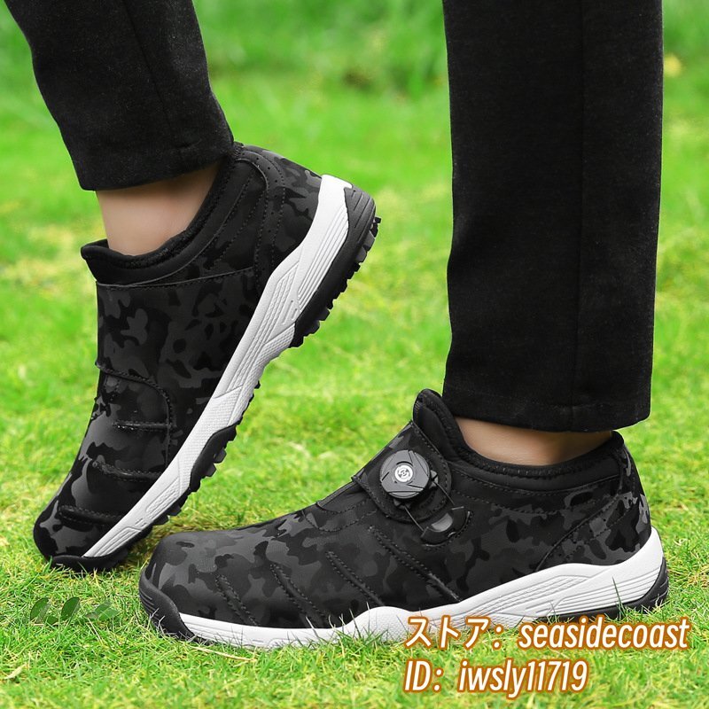 新作 迷彩柄 運動靴 ゴルフシューズ メンズ スパイクレス ダイヤル式 男女兼用 スポーツシューズ 4E 幅広 軽量撥水 通気性 ブラック 25.0cm