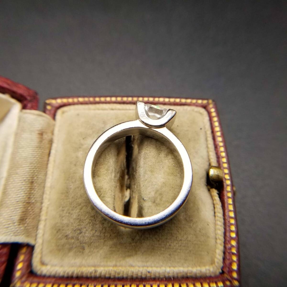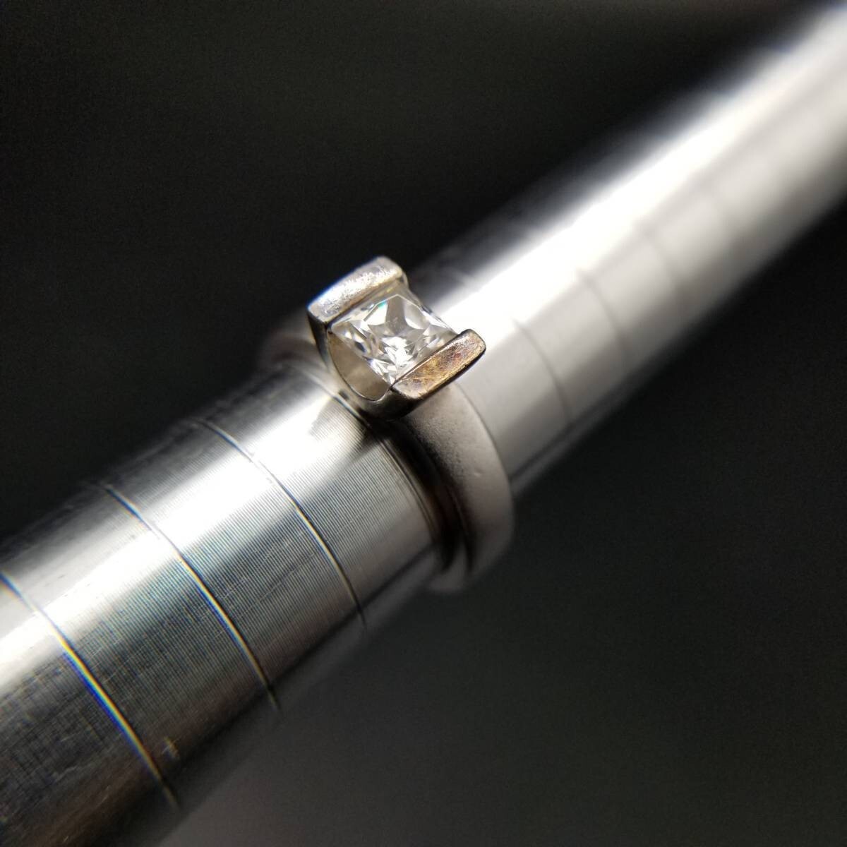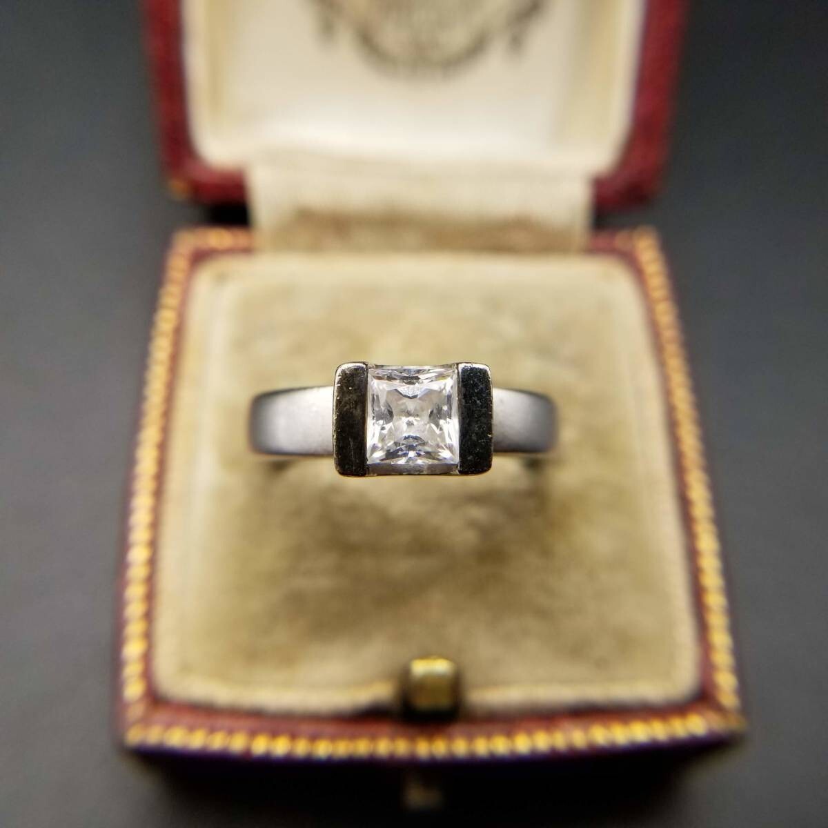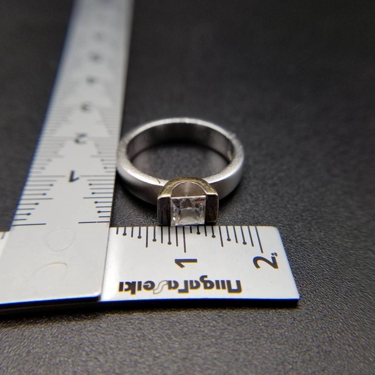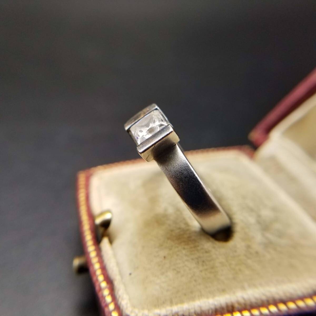 キュービックジルコニア スクエアカット 925 シルバー ヴィンテージ リング 銀 指輪 シンプル エレガント マットシルバー バンド Y17-Q