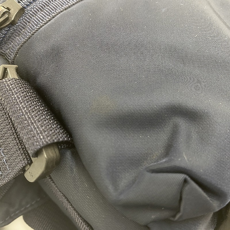 商品説明前側一部にシミあり。全体的に薄汚れています。ファスナーは良好。ダークネイビーのようなカラーです。