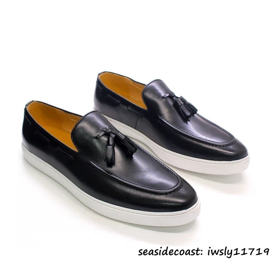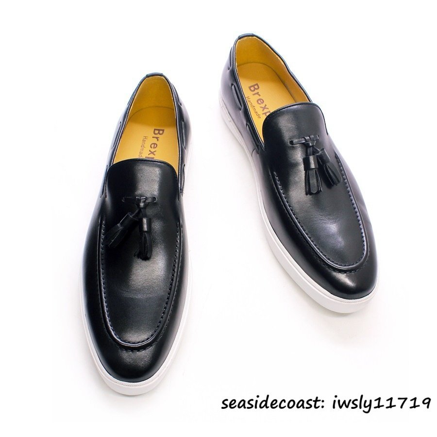 定価9万超◆超希少 ローファー 本革 レザーシューズ スリッポン ビジネスシューズ 牛革 職人手作り 紳士靴 フォーマル革靴 ブラック 26.5cm