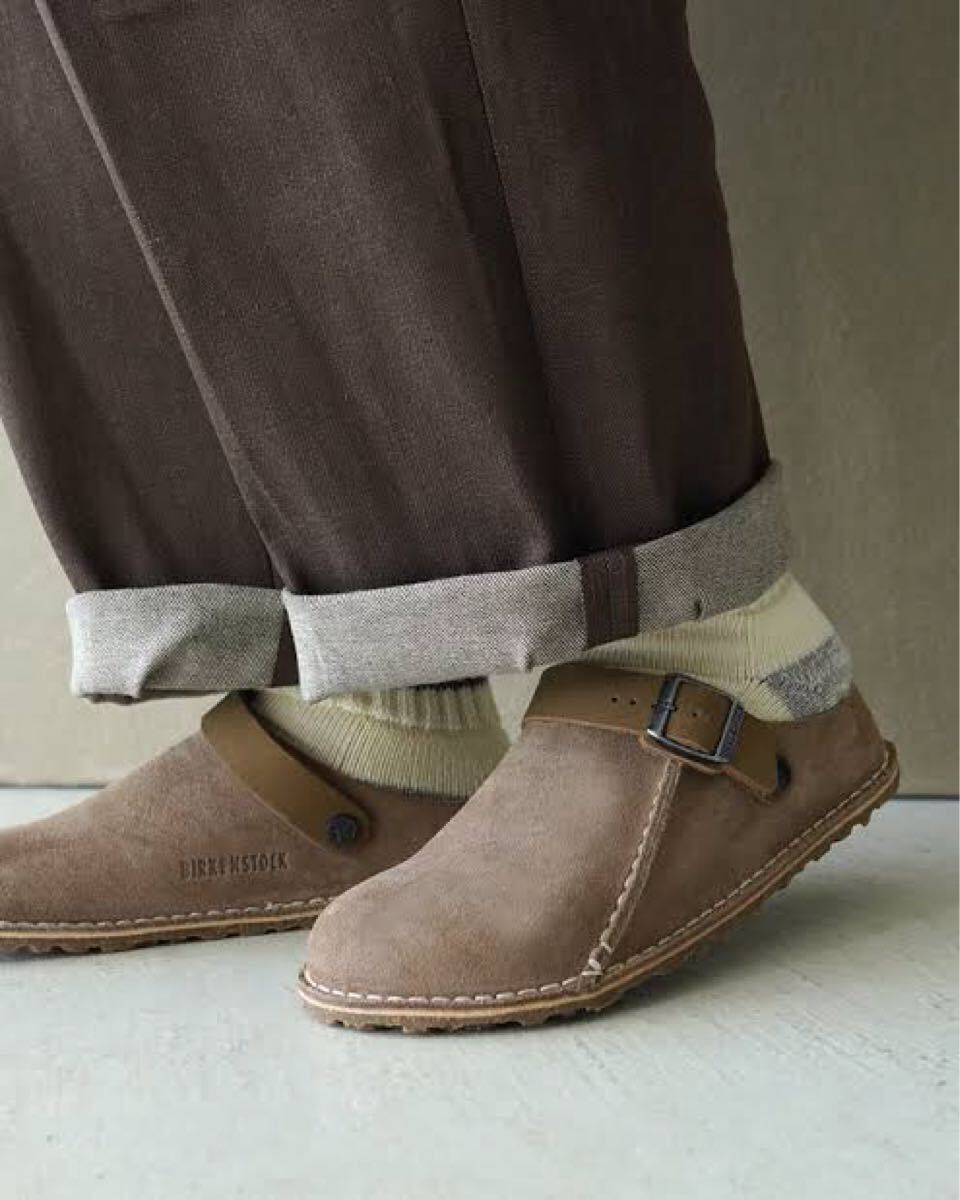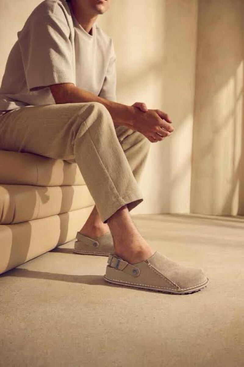 ビルケンシュトック Lutryは、ストラップをバックストラップとして使うことも、倒してオープンクロッグのように履くこともできる使い勝手の良い一足です。砂浜に残った自然な足跡を模して設計されたこのフットベッドで、一日中快適な履き心地を満喫してください。とてもソフトなスエードレザーをアッパーに使用しナチュラル感をたっぷりアピールしています。