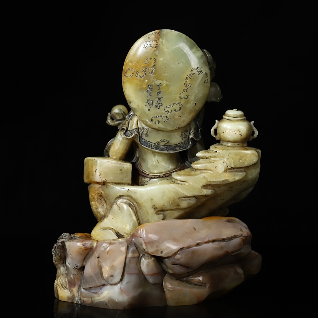 寸法:寿山石台座付き正長14 cm幅10.5 cm高さ17.8 cm正味重量1523 g