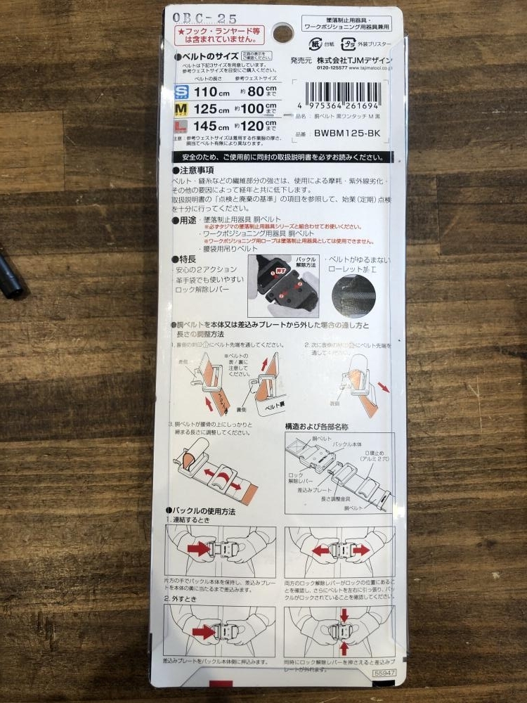 Tajima ■商品名 胴ベルト 黒ワンタッチ ■型番 BWBM125-BK |