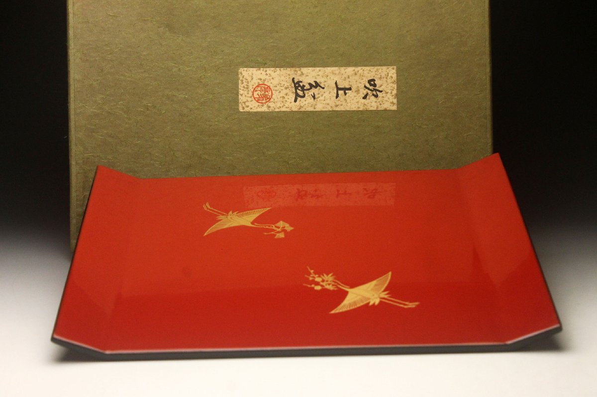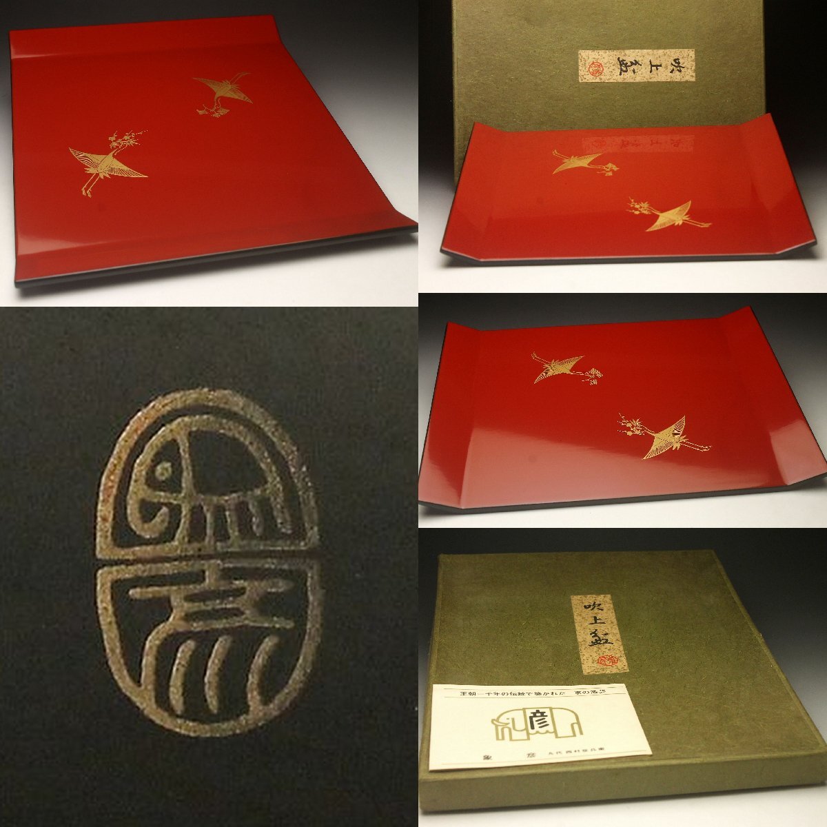 【余韻】 平安象彦 天然木製 朱塗 吹上盆★化粧箱<同梱可>