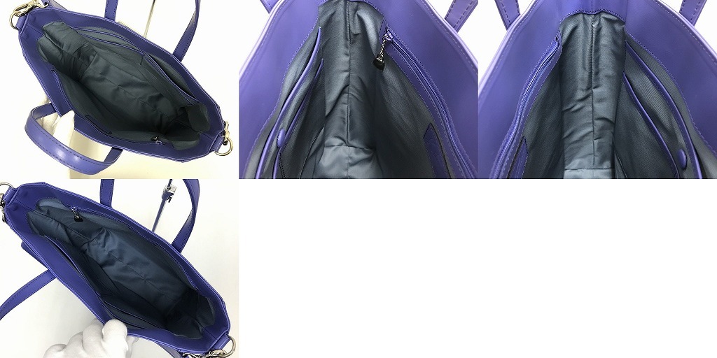 備考ハンドル高さ約11.0cm ショルダー紐高さ(最長)約36.5cm・5段階調節・約3.0cm間隔・紐幅約1.8cm  ショルダー紐長さ調節可・取り外し可  肩掛け可・斜め掛け不可        仕様/ 開閉:オープン   内側:ポケット2 ボタン開閉ポケット1 ファスナーポケット1   外側:ポケットなし   カラー:ラベンダー系 パープル系