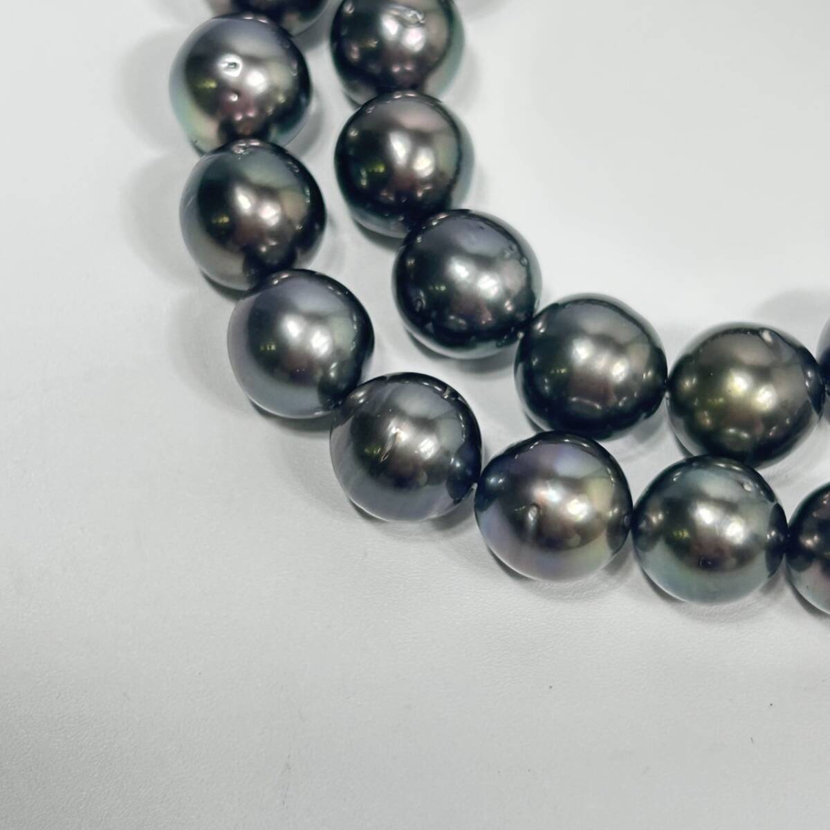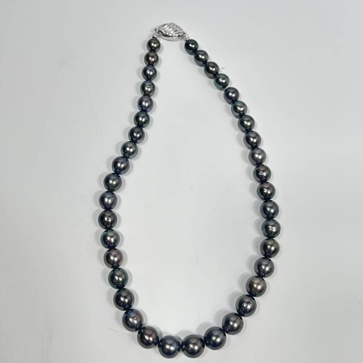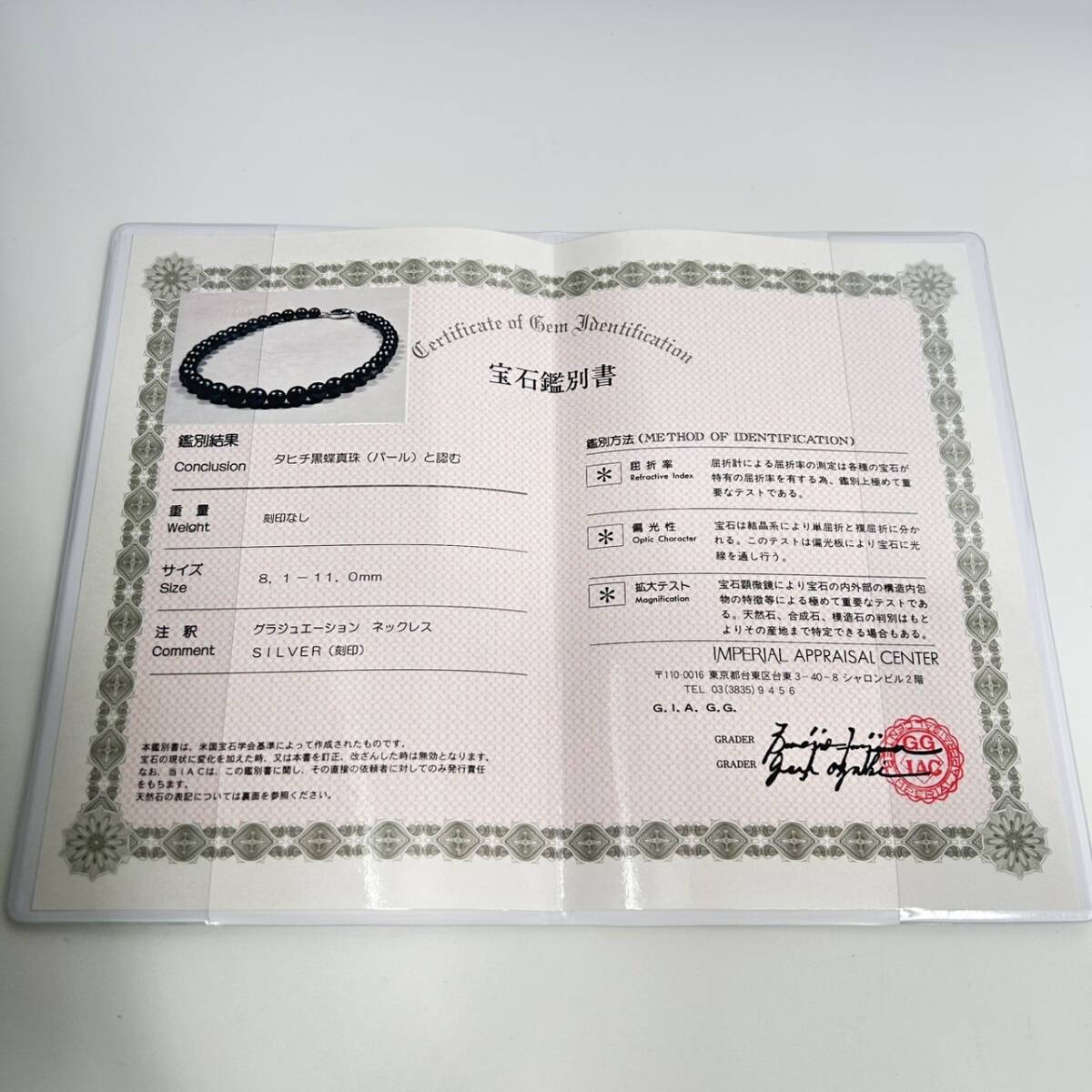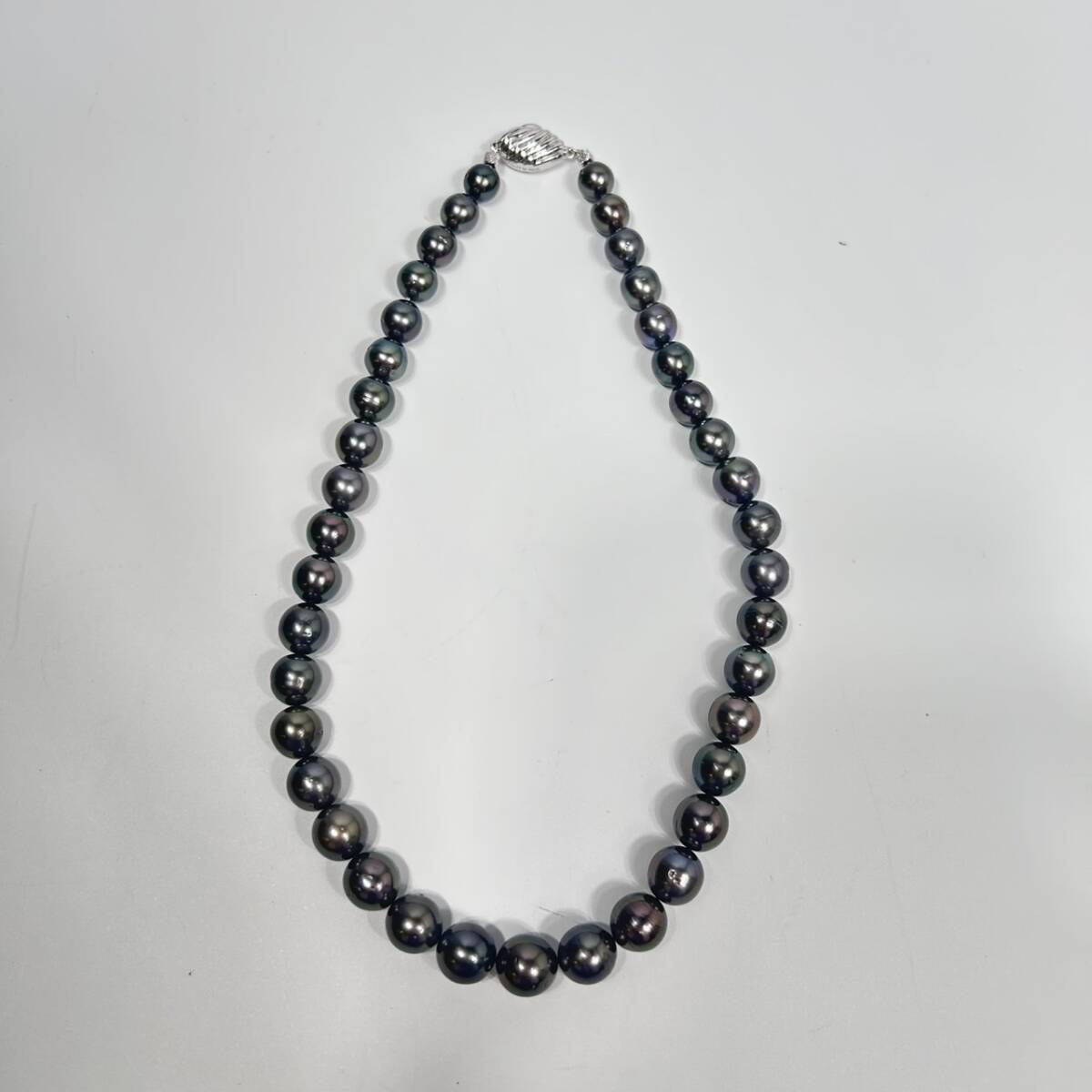 H1632 タヒチ黒蝶真珠ネックレス パール 約8.1-11.0㎜ 全長約44cm 総重量約55.25g ブラック 宝石鑑別書付き アクセサリー ジュエリー | ||