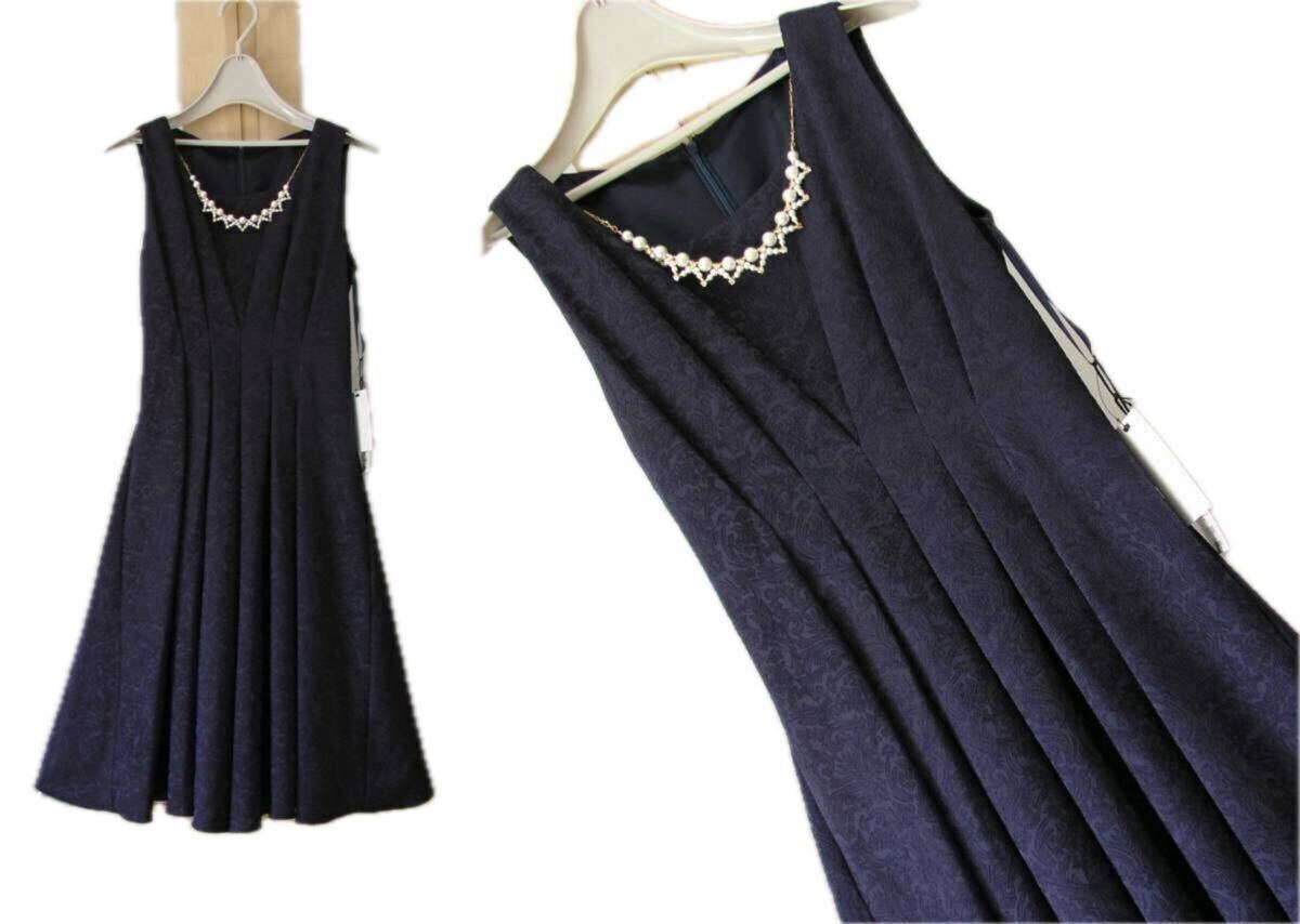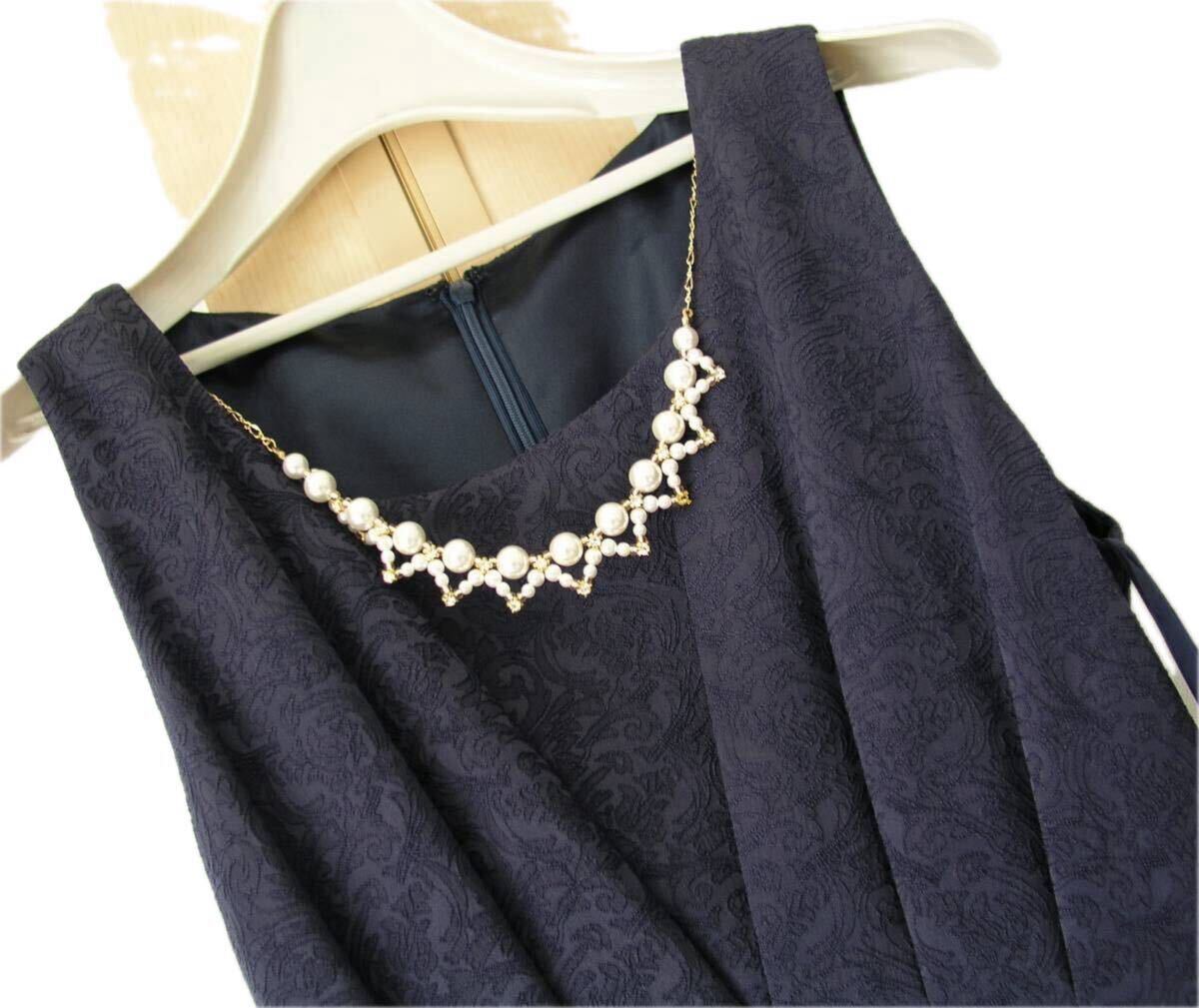 表記サイズ:2 平置き実寸:着丈約94、脇下身幅約42 ** 実寸サイズにつきましては、多少の誤差はお許しください。 2番目画像のネックレスをおまけとしてお付けします。 素材:ポリエステル97、ポリウレタン3 裏地:ポリエステル100 カラー:紺 ※カラーに関しては、一般的に見えるお色を記載しております。 あくまでも私見ですので、予めご了承ください。 | ||