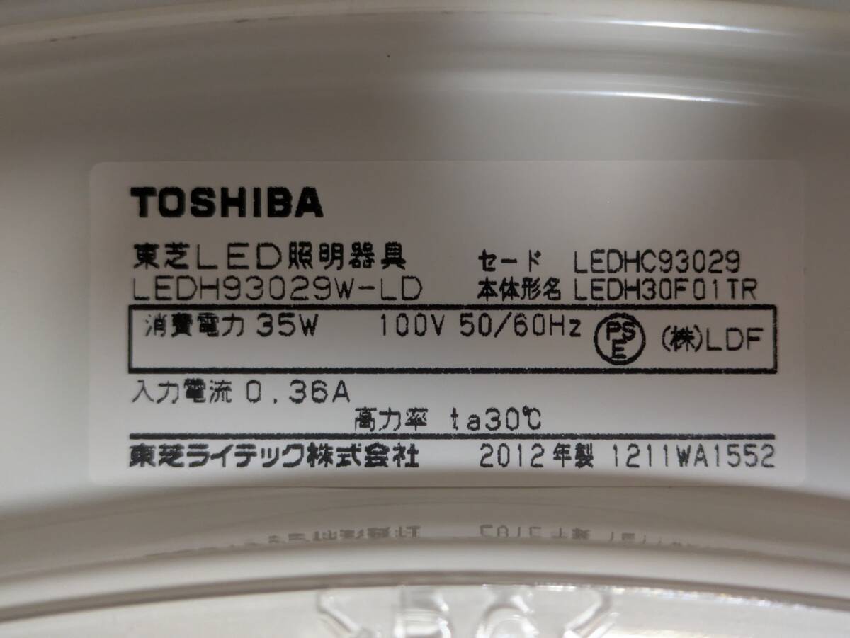 東芝 TOSHIBA LEDシーリングライト (~6畳)  昼白色 LEDH93029W-LD です。