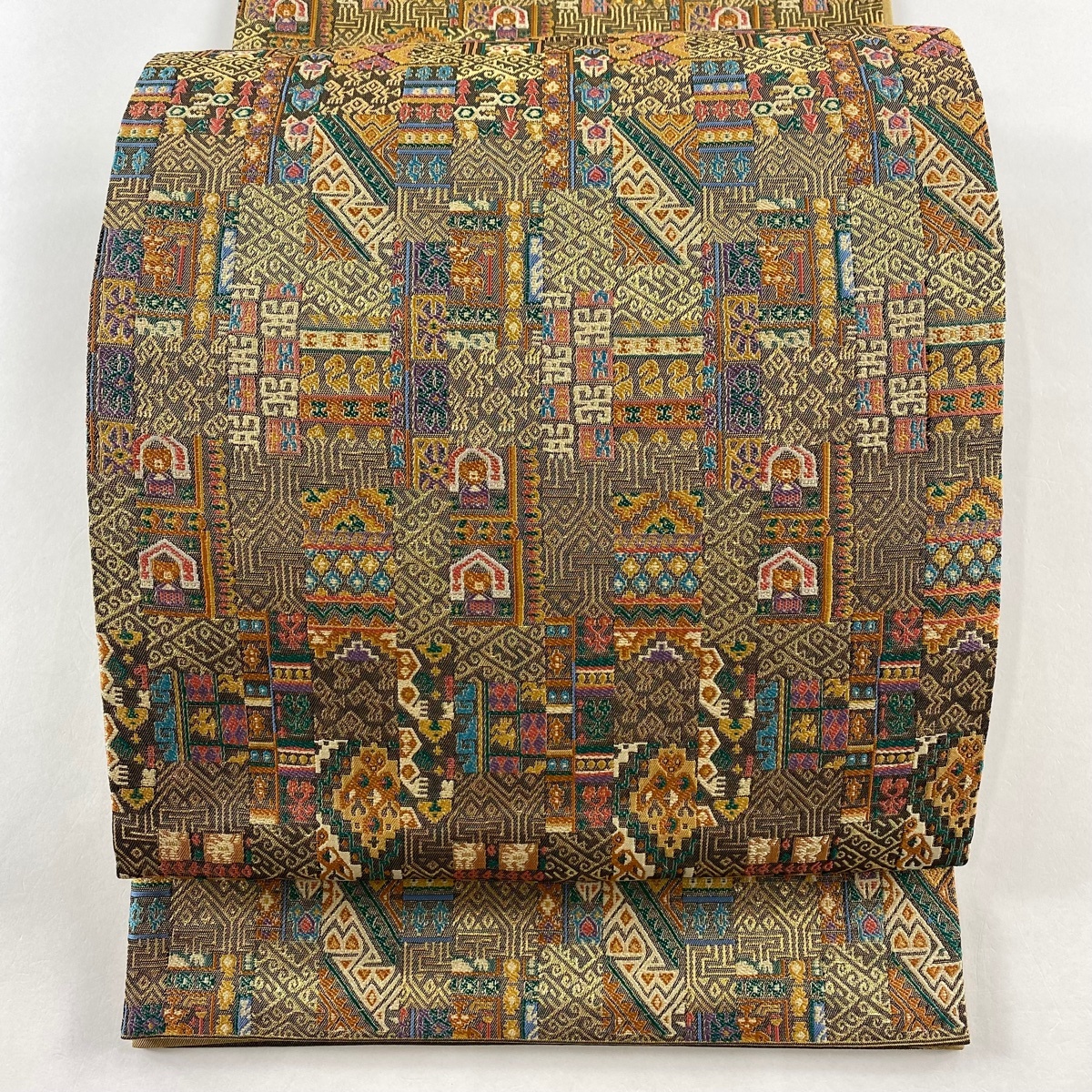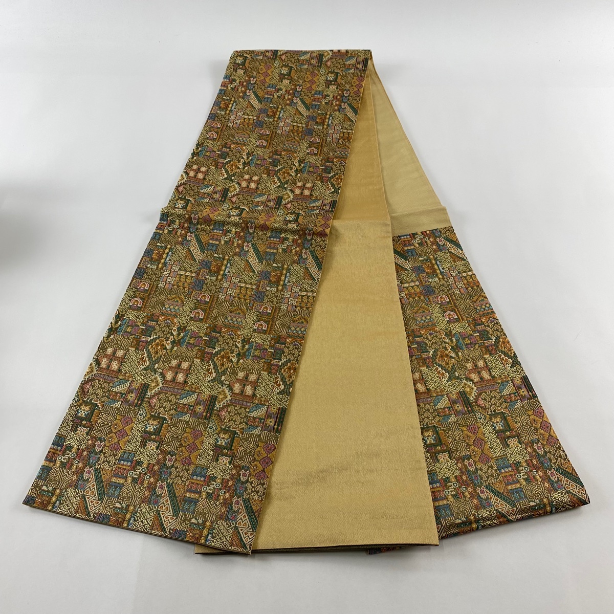 | 袋帯 美品 秀品 鳥 幾何学 金糸 箔 金茶 六通 正絹 【中古】 |