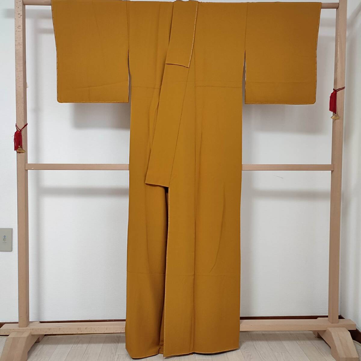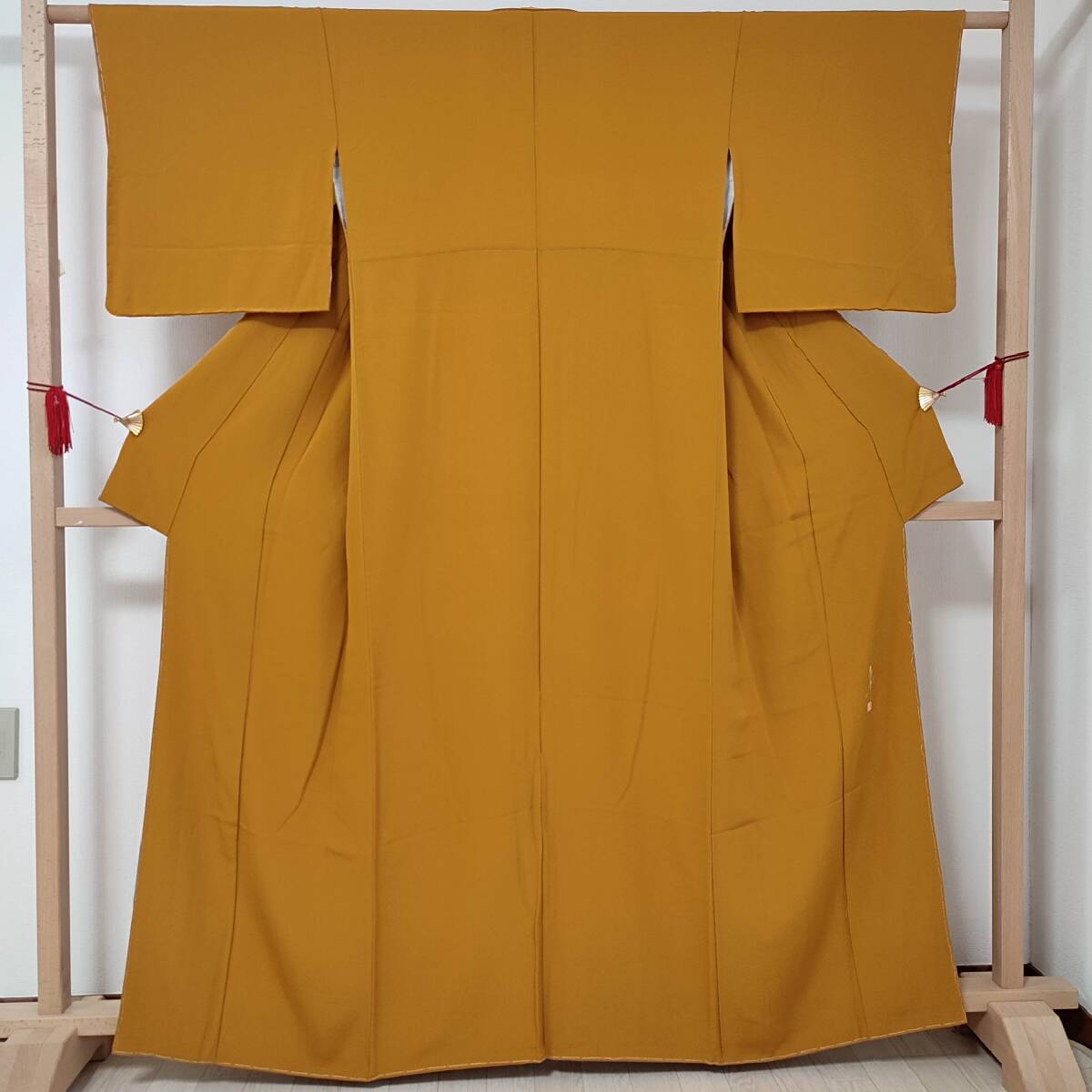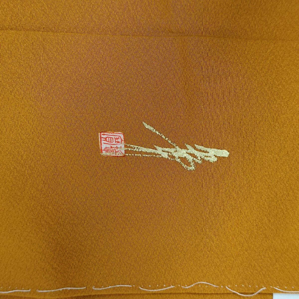 ■着物の越田■裄66.5身丈164 正絹 色無地 袷 しつけ糸付き 紋無し 落款有り 作家物 四丈物 美品 観劇 カジュアルなパーティー■み18E07