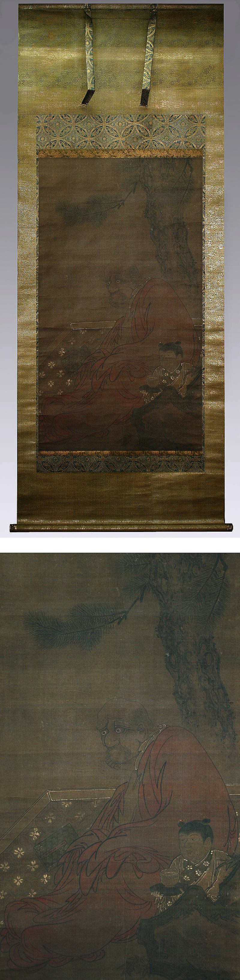 | No.100106【肉筆】古画【大幅・羅漢図 】◆絹本◆合箱◆掛軸 | |