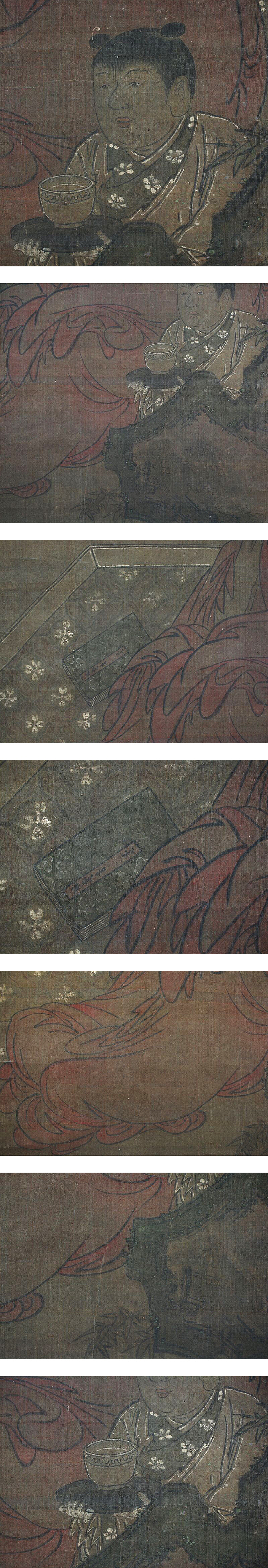 古画【大幅・羅漢図 】 本紙は、染み、汚れ、折れ、皺、剥落、虫食い、時代感があります。 表装は、染み、汚れ、折れ、皺、ほつれ、くすみ、ヤケ、時代感、軸先に傷みがあります。 【サイズ】 作品 横約68.5cm×縦約123.5cm 表装 横約87cm×縦約224cm |