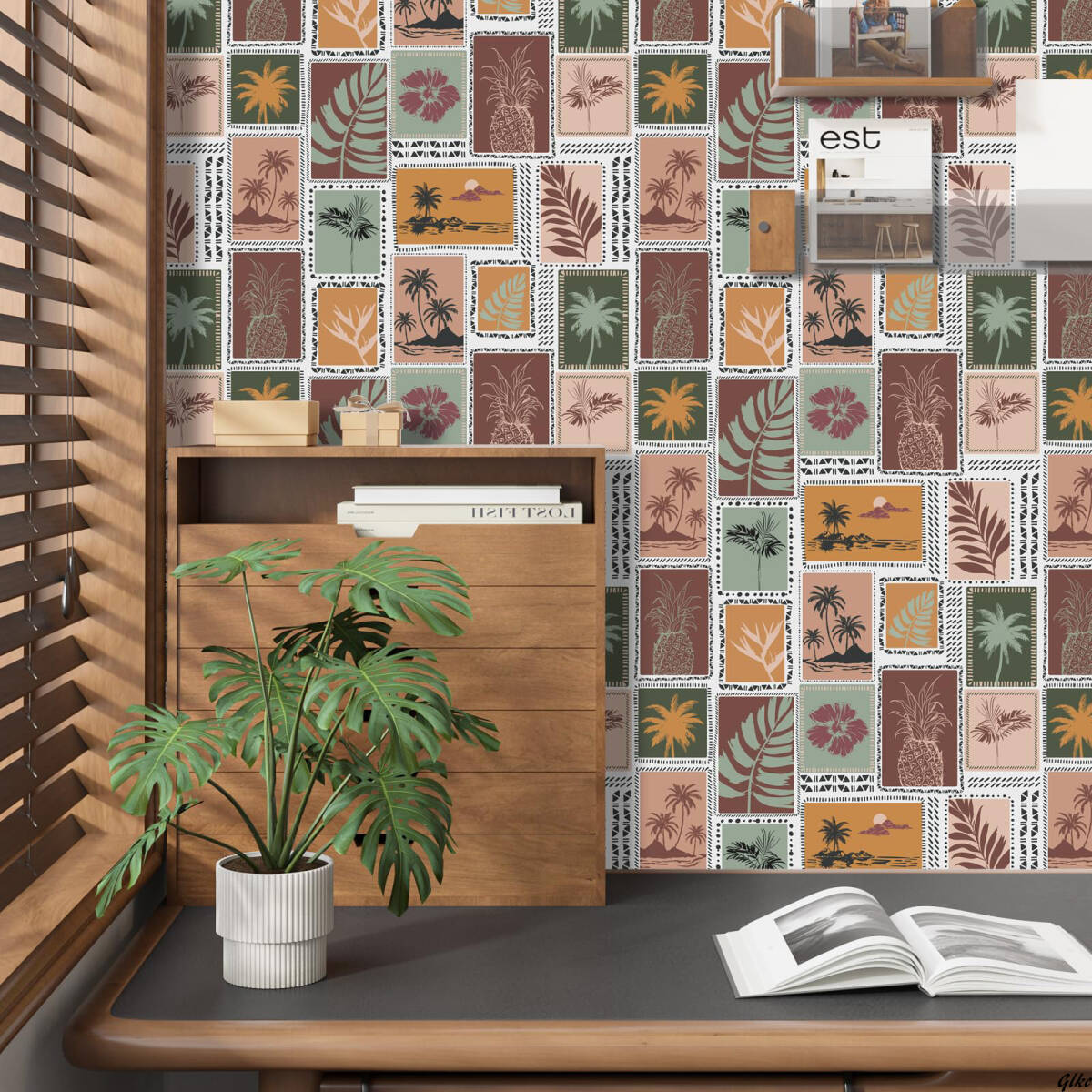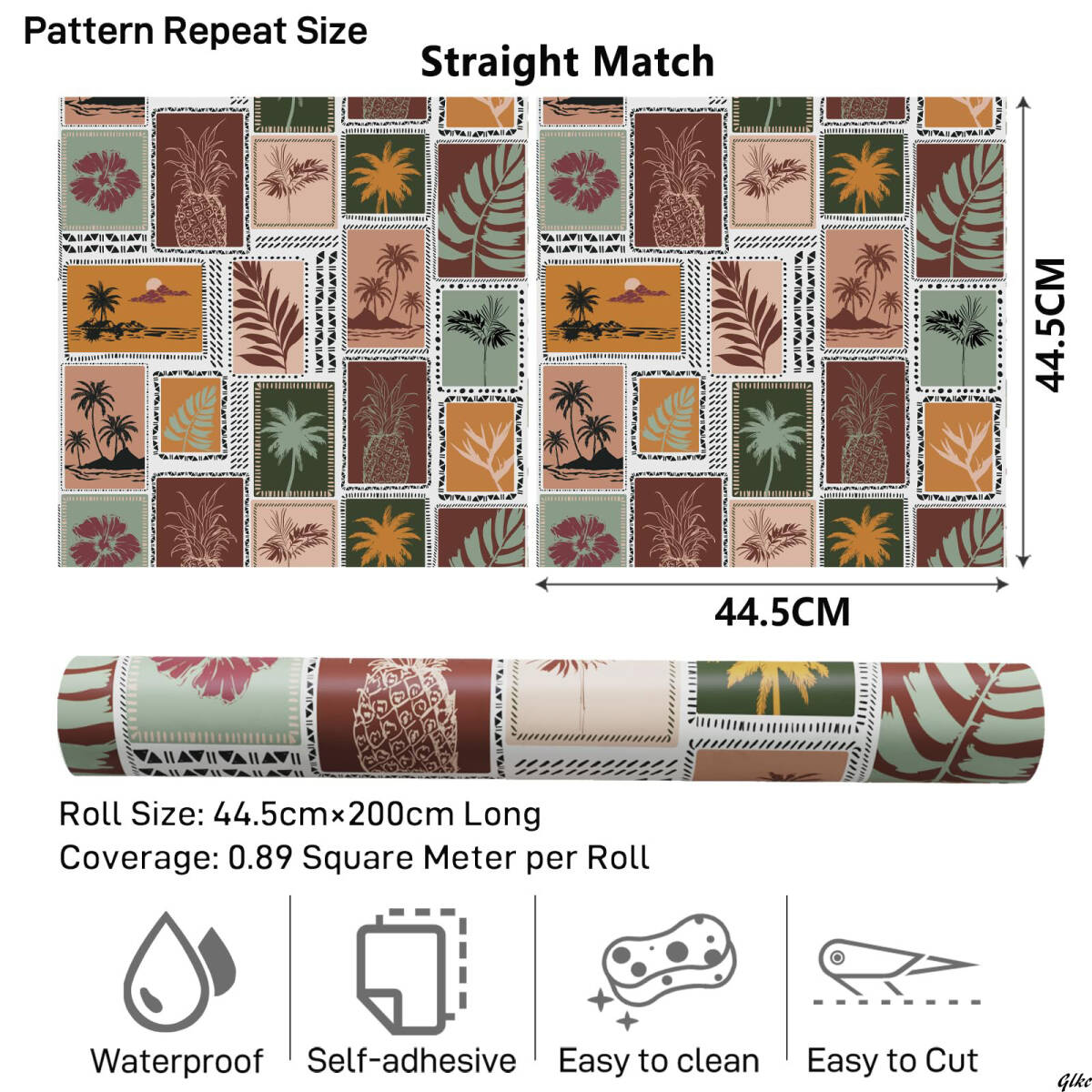 【剥がしてものり残りがなく賃貸でも安心】 リメイクシート 壁紙シール 葉柄 DIY インテリア フラワー 防水 防油 はがせる壁紙 部屋 装飾