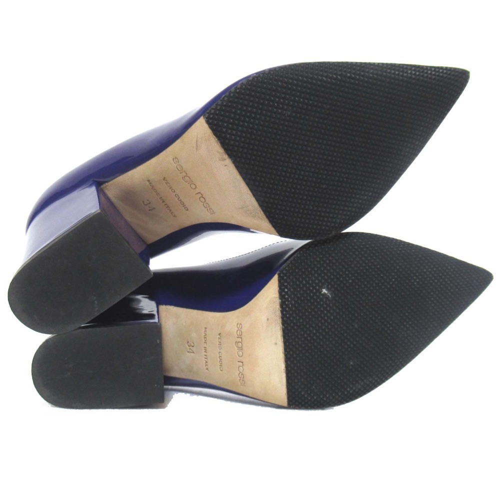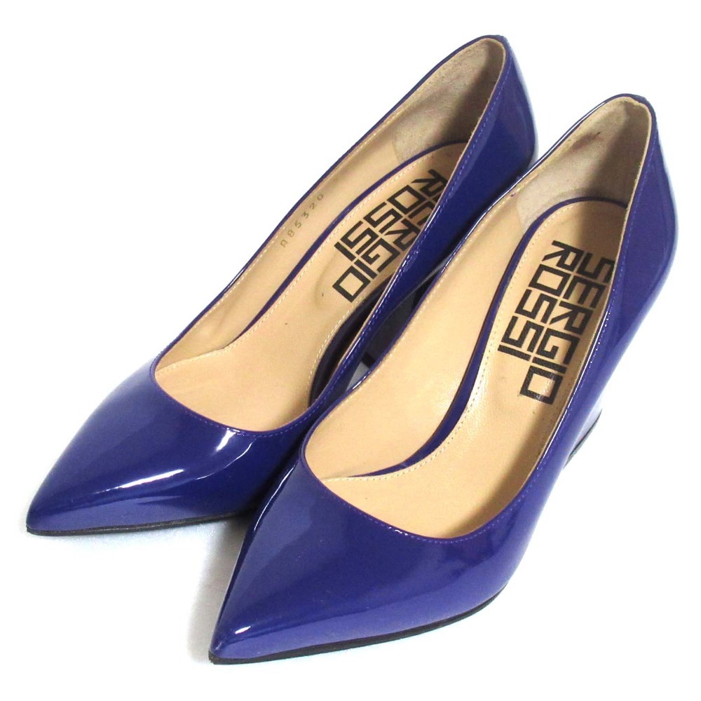 美品 Sergio Rossi セルジオロッシ パテントレザー ポインテッドトゥ チャンキーヒール パンプス 34サイズ 21cm相当 パープル