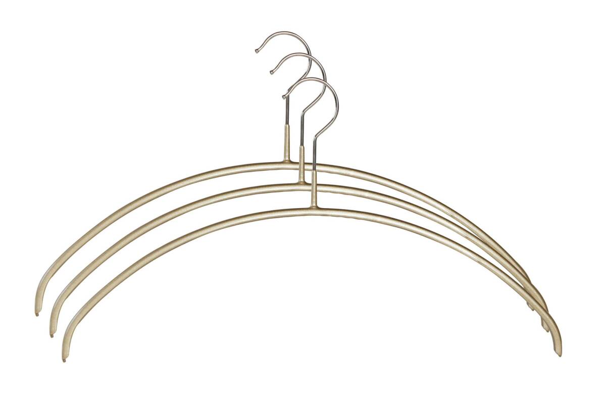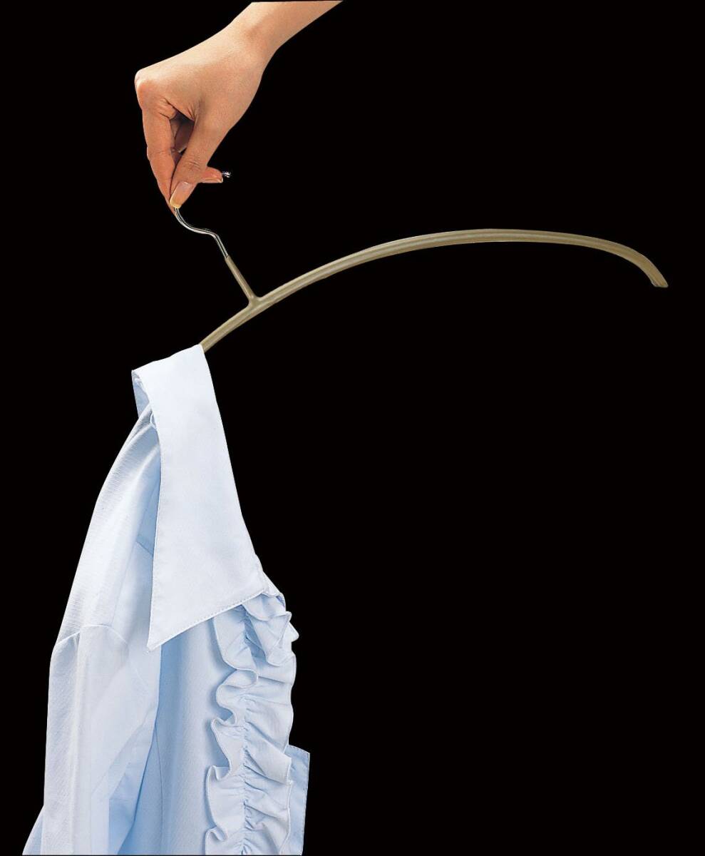 商品紹介 MAWA すべり落ちないマワハンガー 人体ハンガー 3本組 ゴールド 110558 より ●MAWAハンガーはドイツで生まれて60年。品質の高さとシンプルなデザインで世界中で愛されています。`すべらない'加工が衣類を型崩れから守り、スリムなデザインで抜群の収納力を発揮します ●何といってもMAWAハンガーの代表的なフォルム ●緩やかなカーブは衣類の肩部分を引っ張ることなく掛けられるので、肩部分に「角」のような跡も付きにくく収納できる ●色のついている部分全てにノンスリップコーティングが施されているので、掛けた衣類が滑りにくく、落ちにくいので形を崩しにくい ●襟のない丸首のシャツやブラウスにもお使いいただけます ●洗濯用としても使用でき、乾いたらそのままクローゼットへ。たたむ手間が省けるので洗濯の手間が省けます。もちろん浴室乾燥も使用可能 ●同じハンガーを使用すると肩のラインが並ぶので見た目も美しく、洋服が選びやすい ●厚さが1cmとスリムなので沢山の衣類を収納できる ●衣類をハンガーに掛けて収納することによって、折シワが付かないためお出かけ前のスチームやアイロンかけの手間が省けます